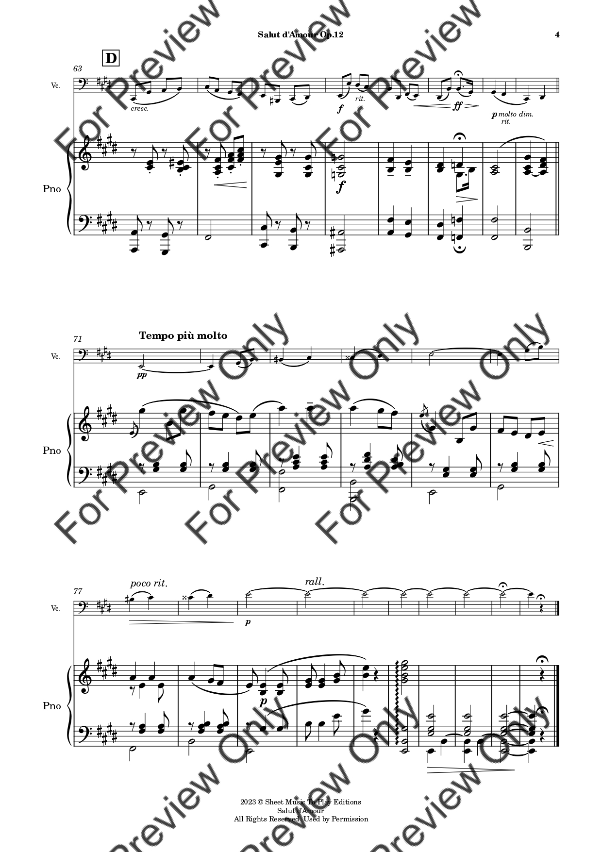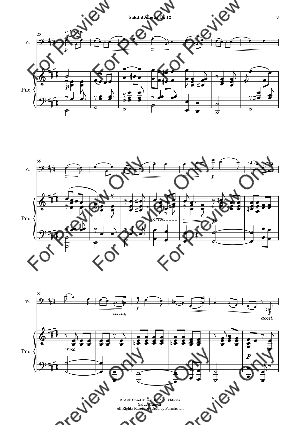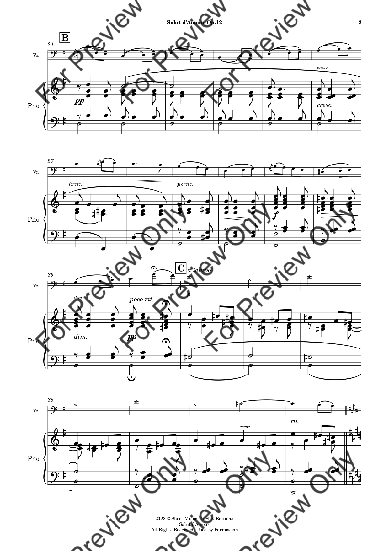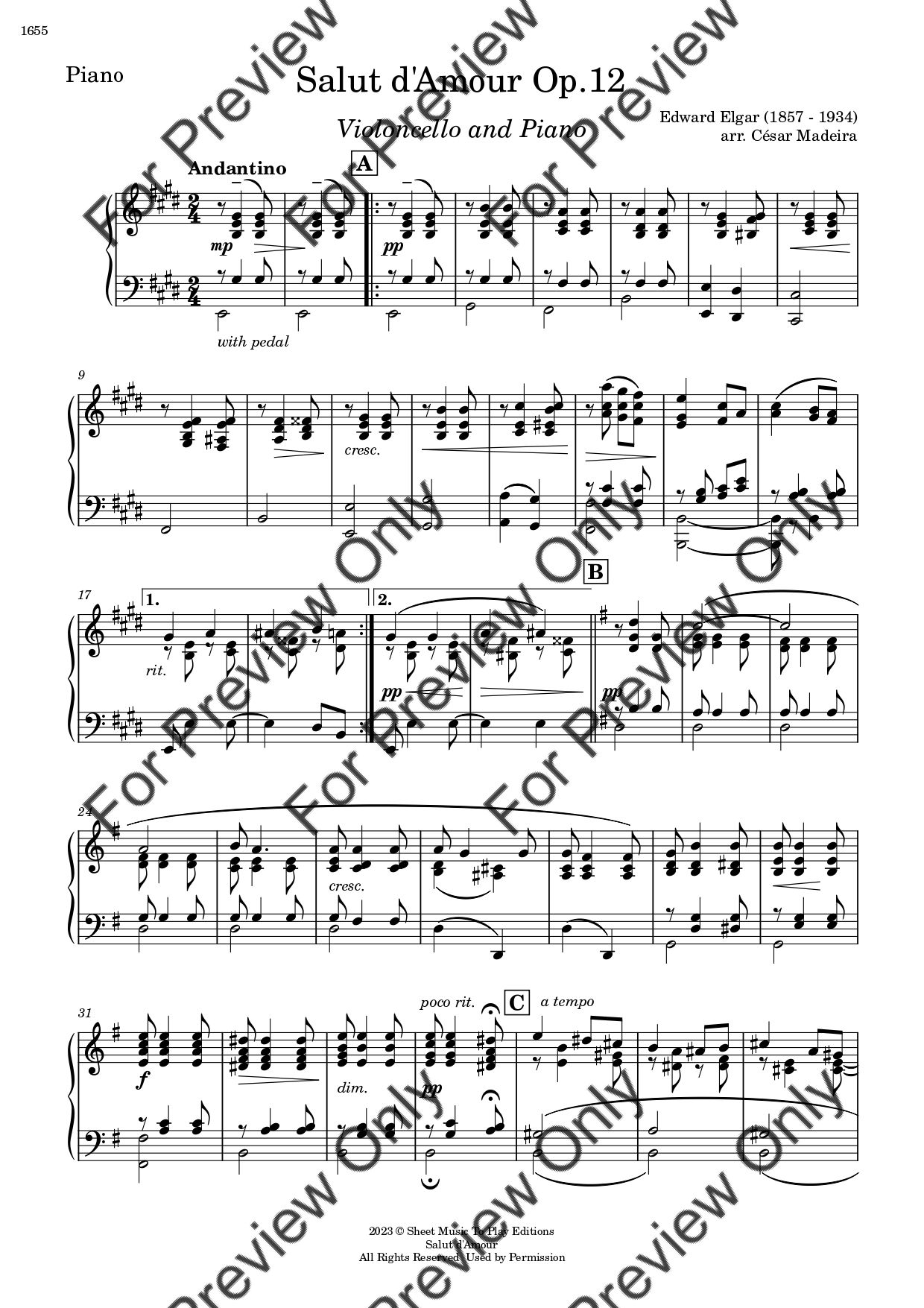 Salut d'Amour, Op.12 by Edward Elgar. Arrangement for Violoncello and Piano. With Full Score and Individual Parts. Have fun!