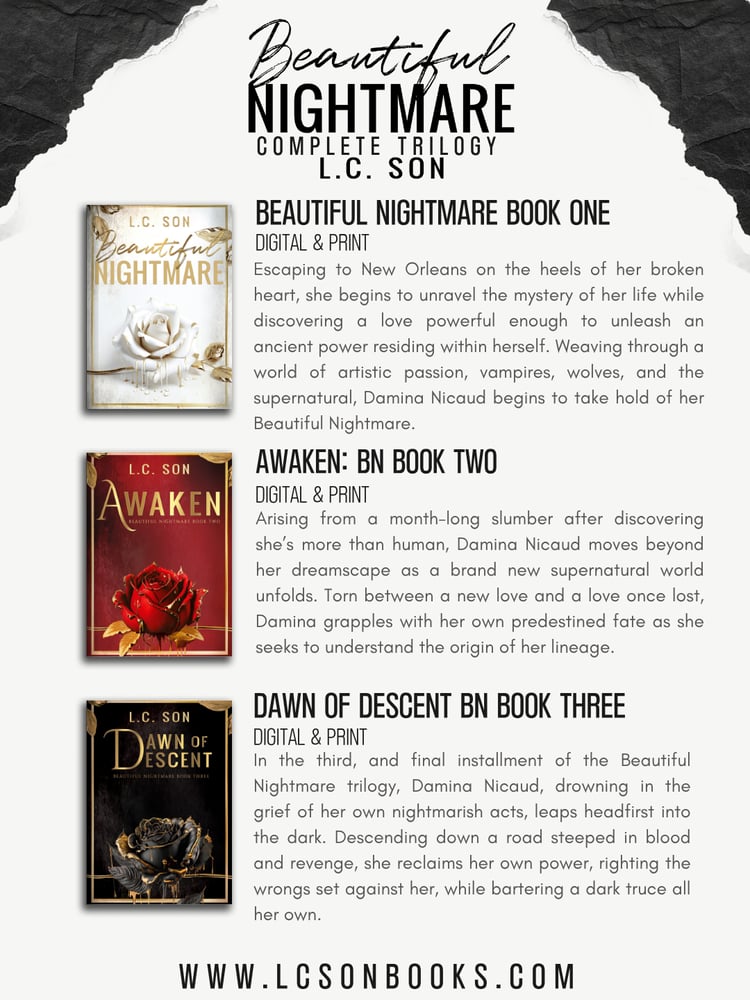 - All three books: Beautiful Nightmare, Awaken, Dawn of Descent
