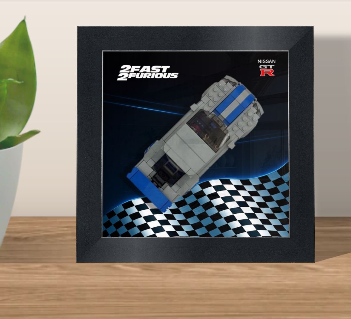 🏁 Affiche fond de cadre LEGO – Nissan Skyline GT-R (2 Fast 2 Furious) – Format 20x20 cm – Nouveau visuel