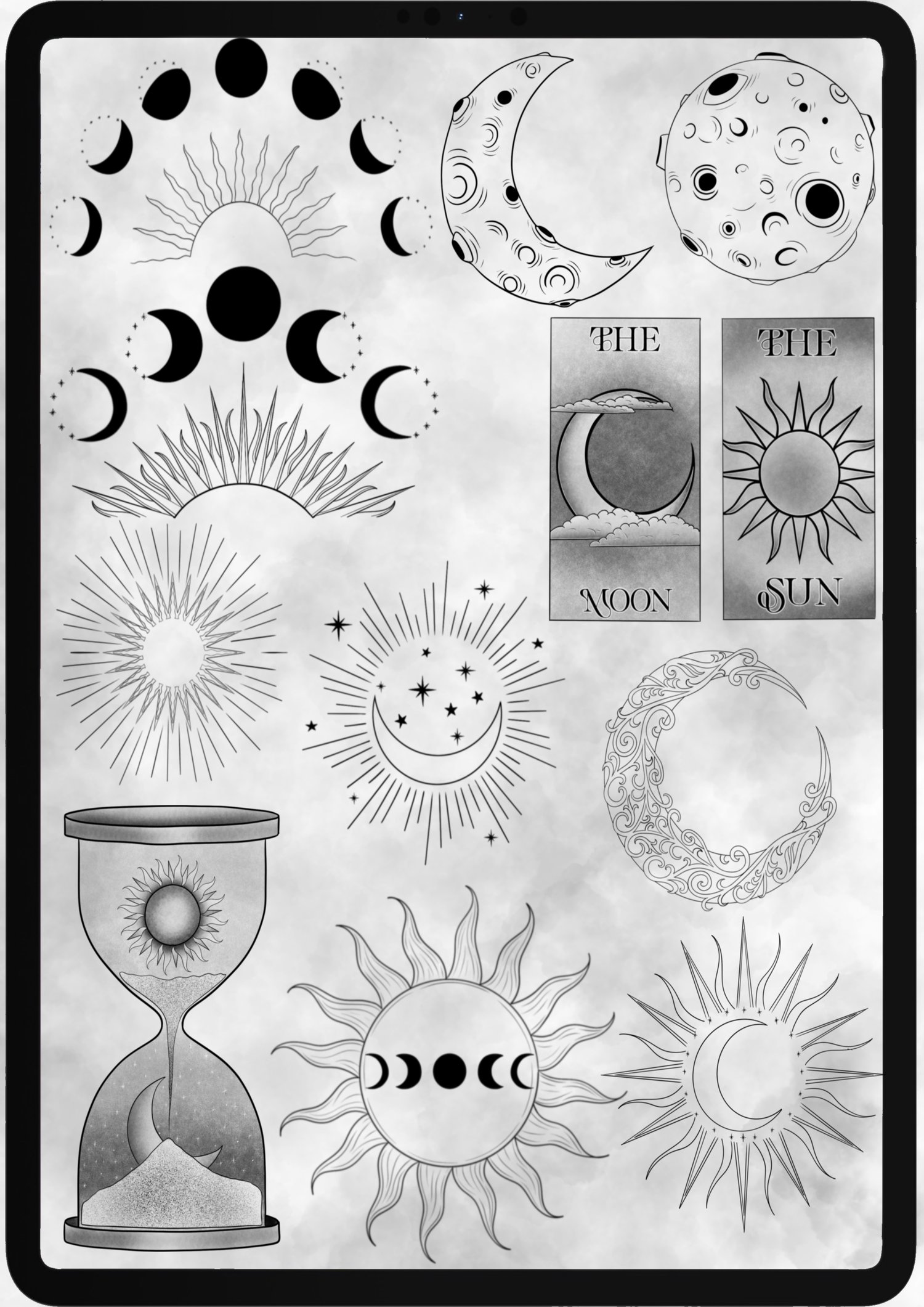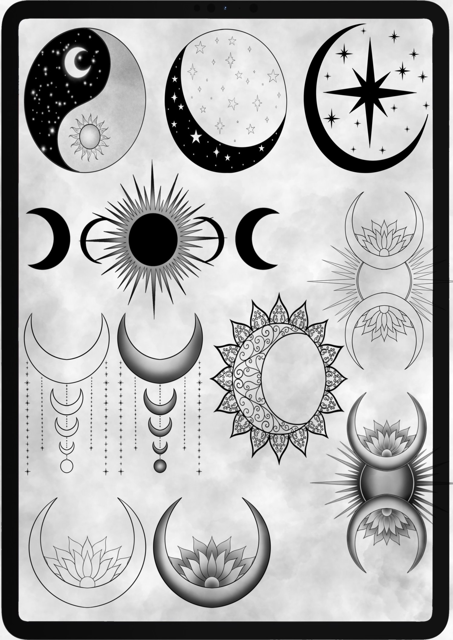 Featuring a variety of outlined and shaded designs. Explore different artistic styles of the Sun and Moon to enhance your digital creations.