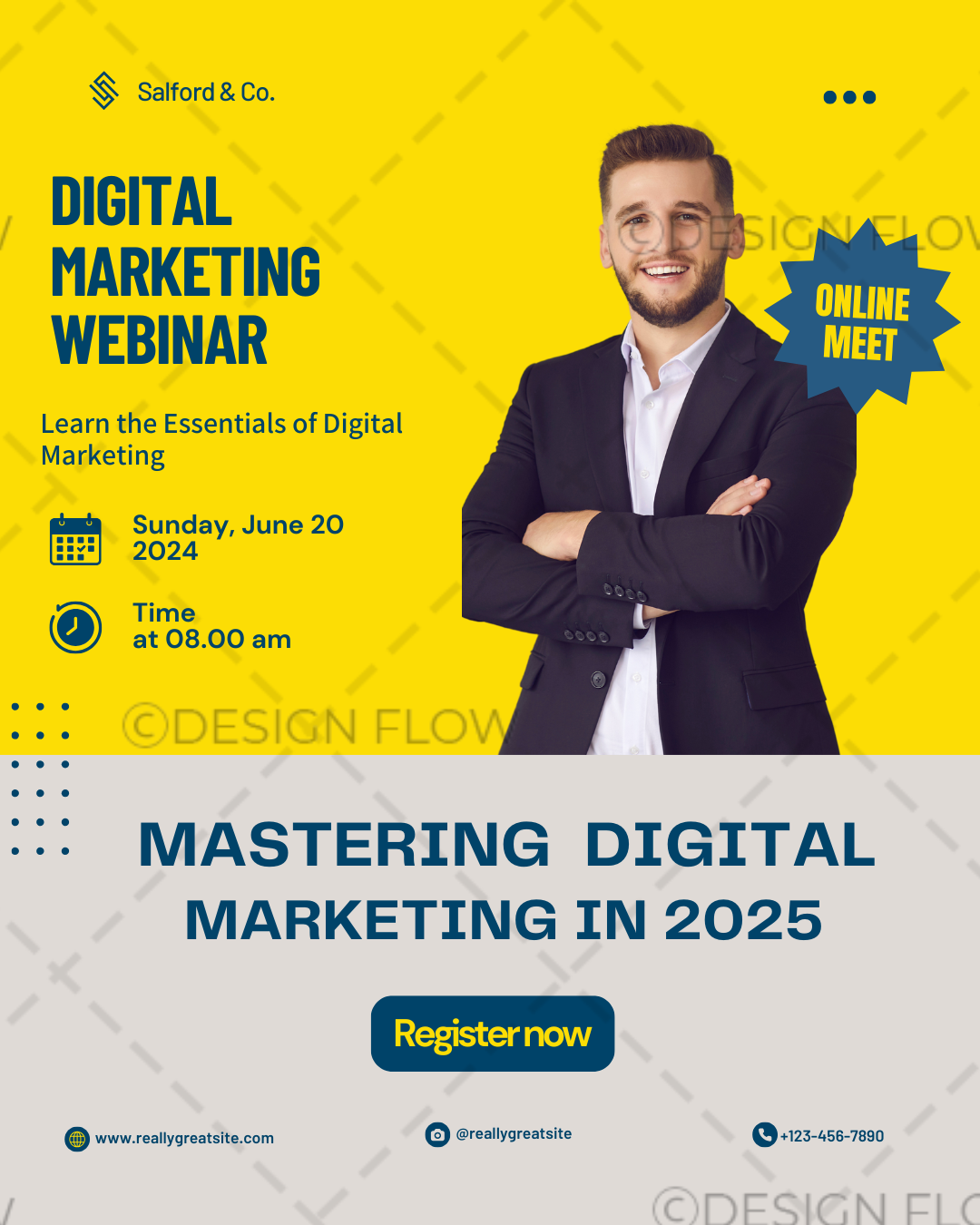Promote your online webinar or virtual event with this bold Instagram Post Template in a modern blue & yellow theme. Designed for coaches, educators, and marketers, this template helps you stand out with a professional, eye-catching layout. Fully editable in PPTX, so you can easily adjust text, fonts, and images.