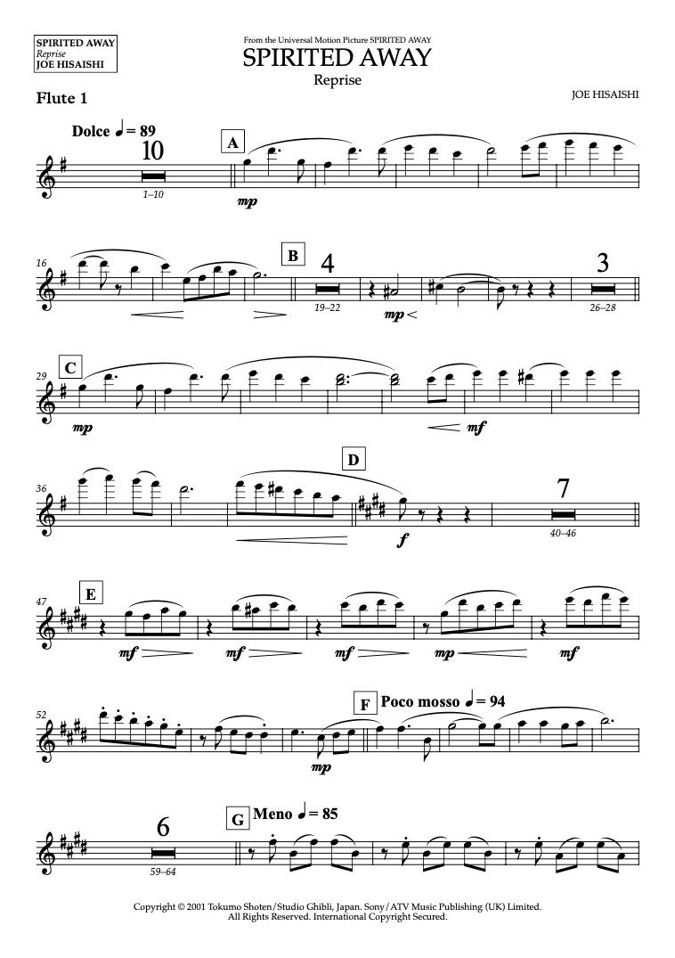 Spirited Away (Reprise) - Joe Hisaishi (Full Score and Parts)