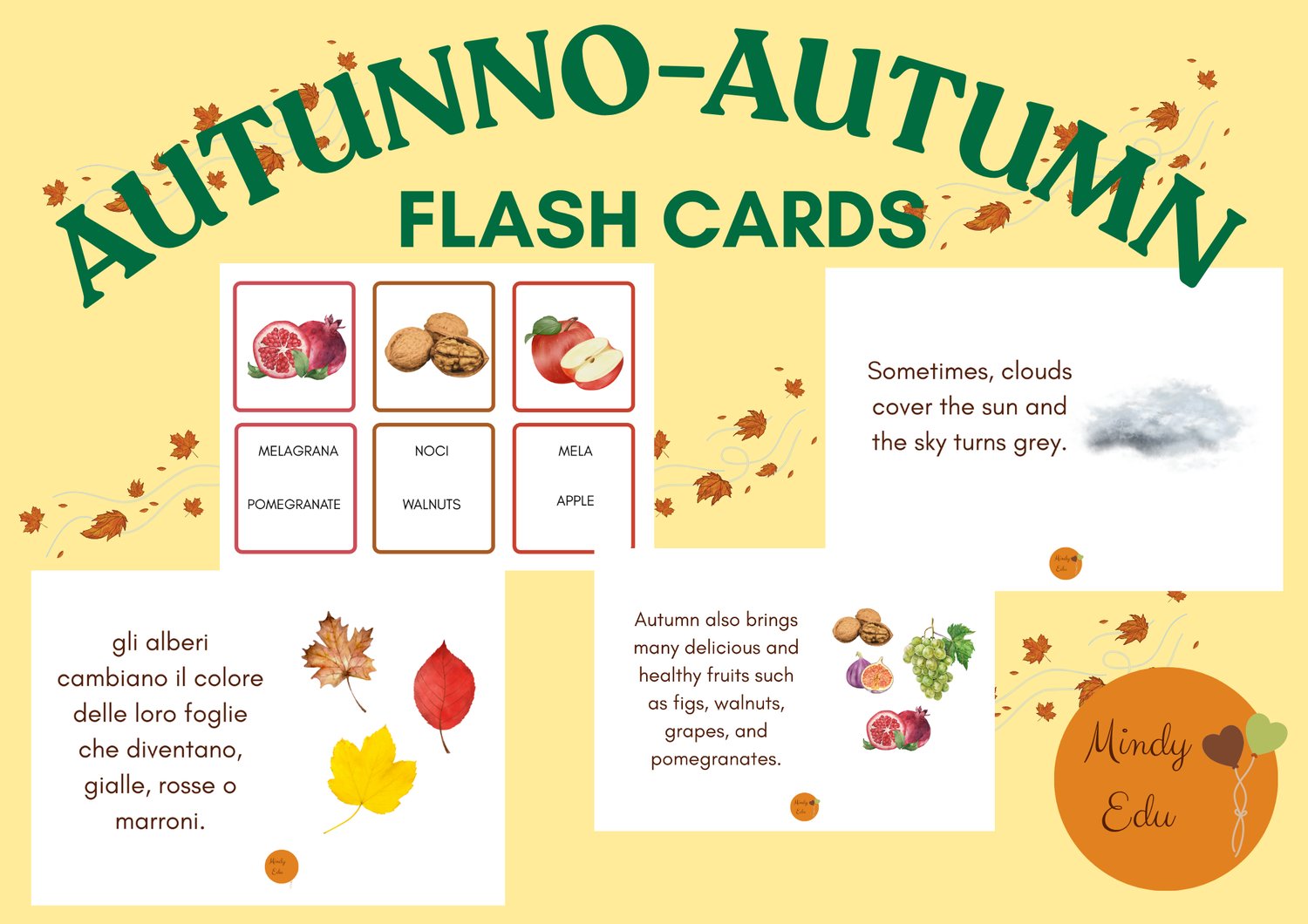 Materiale didattico bilingue (italiano–inglese) per scoprire l’autunno attraverso immagini, parole e brevi testi.