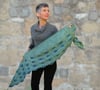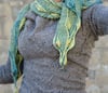 The main design element of this shawl are the brioche “scales” in different sizes that run along the piece, formed by double increases and decreases, forcing the fabric in three-dimensional shapes, in a play of texture with two different “garter” stitches, that reminds me of a Reptile skin.