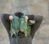 Fingering weight wool (or wool mix) yarn in two colors, approx 440 yards/400 m each.The sample in the pictures is made with Malabrigo Sock (100% Superwash Merino; 440 yards 402 meters/100 gr) col. 133 Reflecting Pool for MC, col. 037 Lettuce for CC, approx 420 yds (384 m) each.