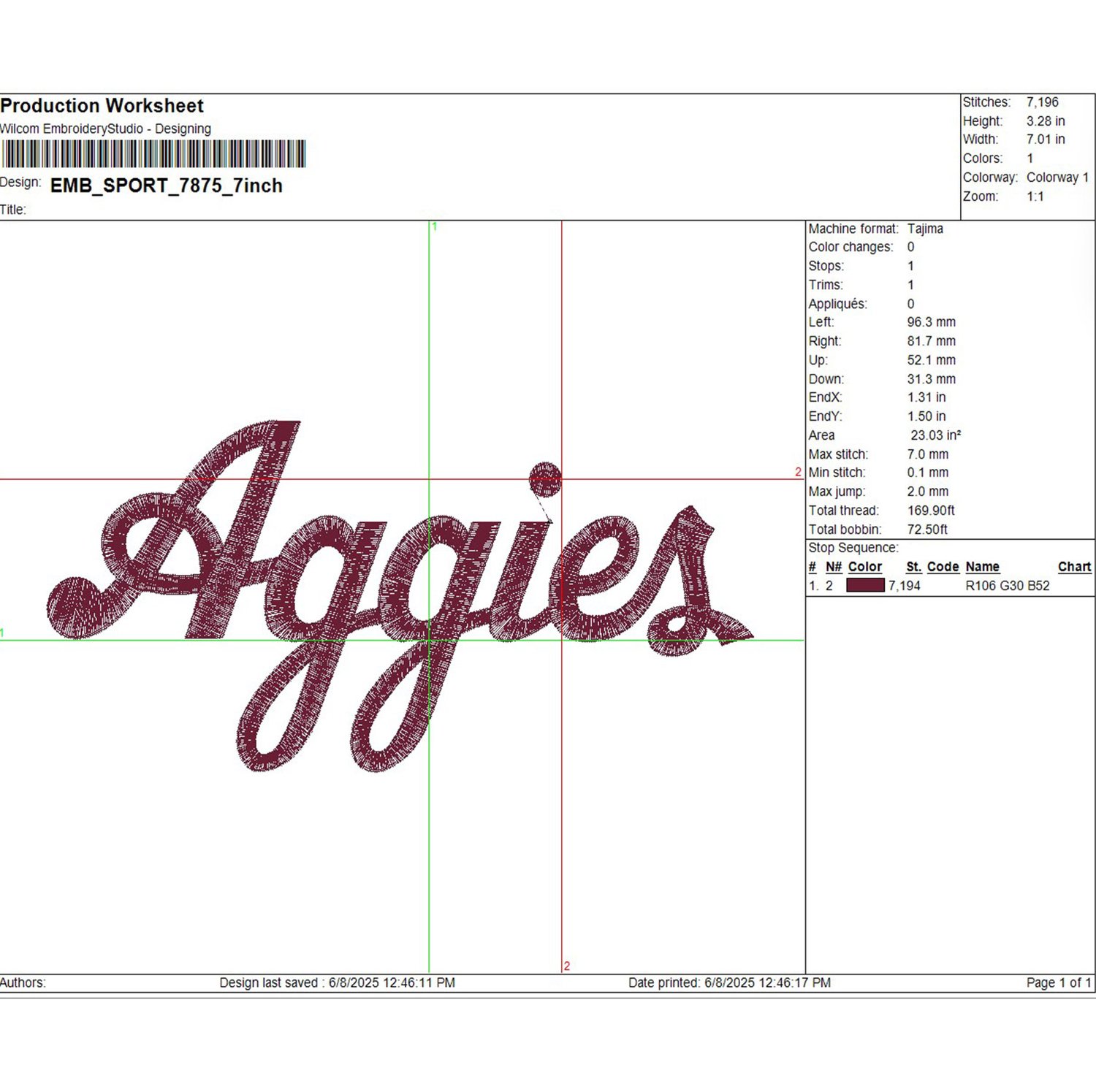 Aggies NCAA Football Team Logo Embroidery Designs, NCAA Texas AM Aggies Machine Embroidery Files, NCAA Logo embroidery designs, NCAA Texas AM Logo, Digital Download
