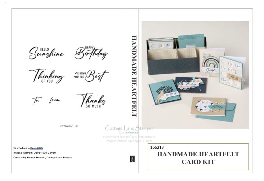 A printable case insert, in PDF form, for your "Handmade Heartfelt" Sept 2025 card kit from the Stampin' Up! Online Kits Collection. Great for storing your stamps and extra pieces.