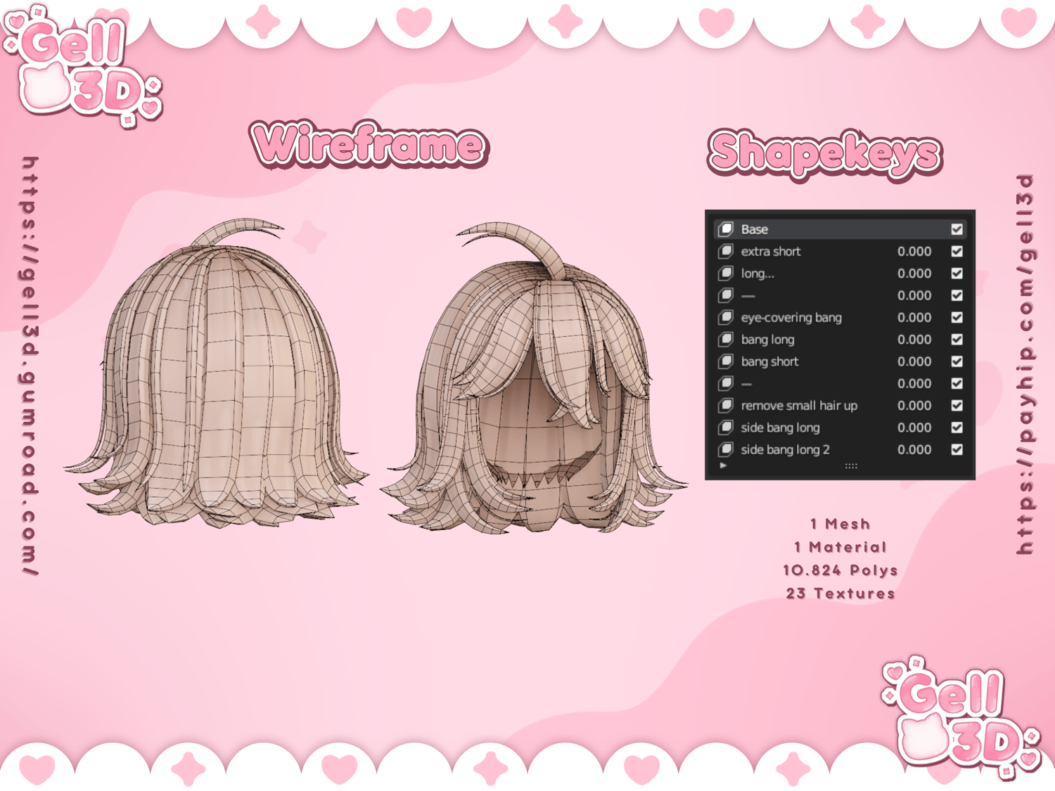 Set ♡ Long & Short Hair (#1) Miu - VRChat Asset