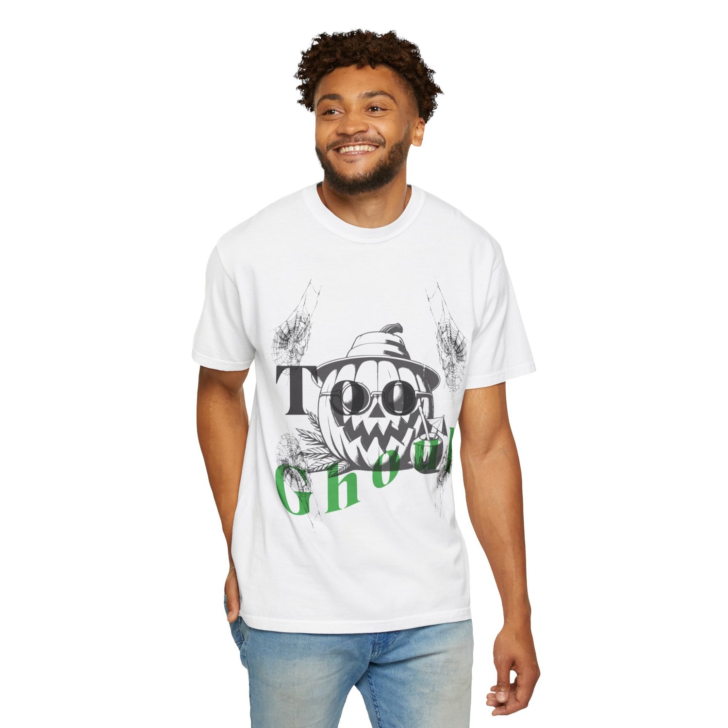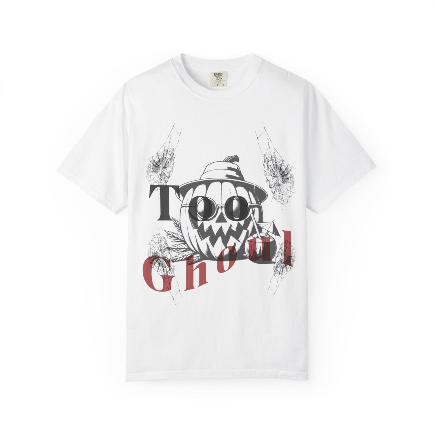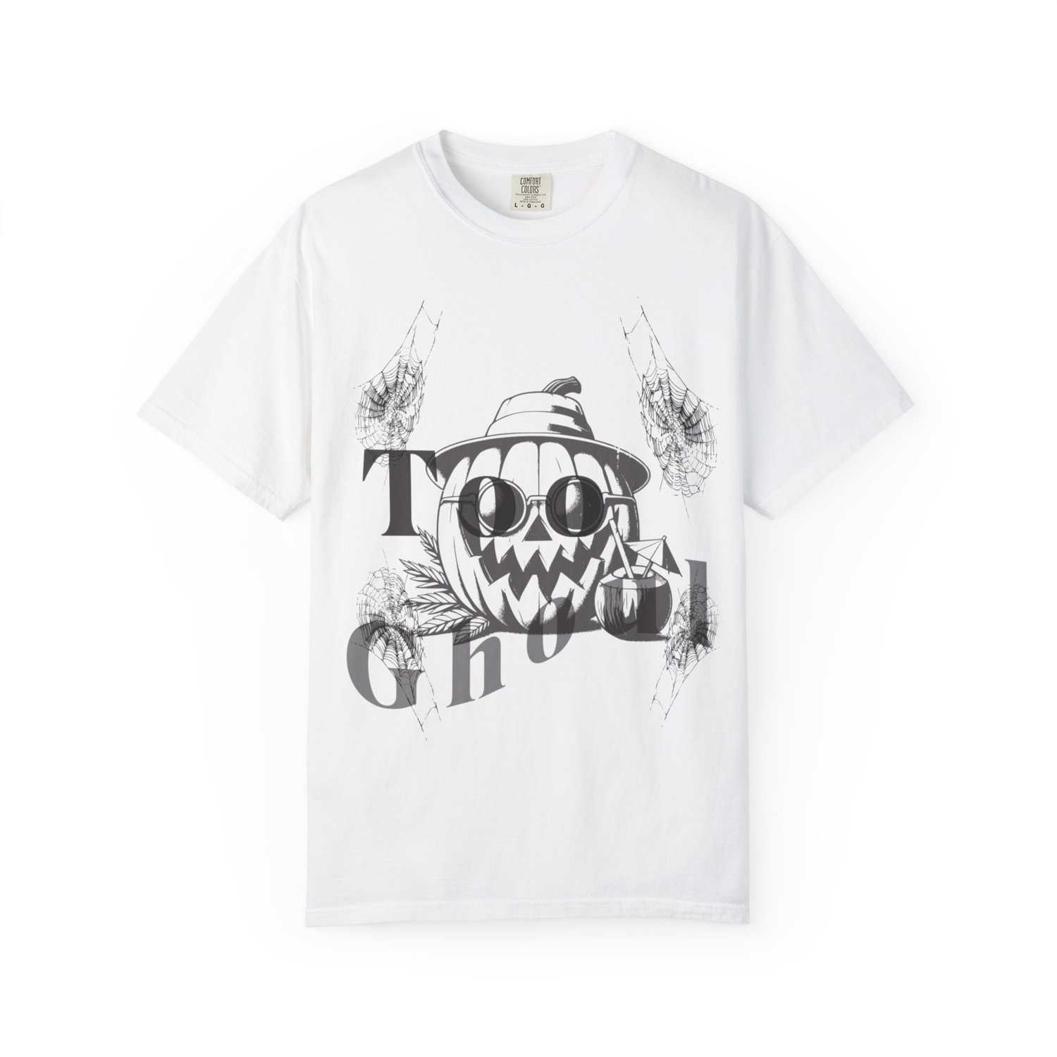 This T-Shirt features a cute design of a pumpkin sipping a tropical drink while wearing sunglasses and a 'too ghoul' quote. Perfect for Halloween enthusiasts looking for a fun and festive shirt to wear during the spooky season.