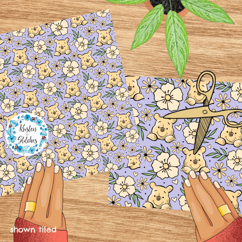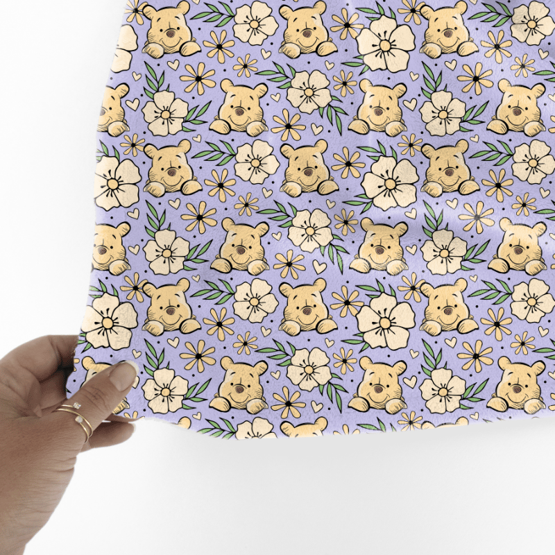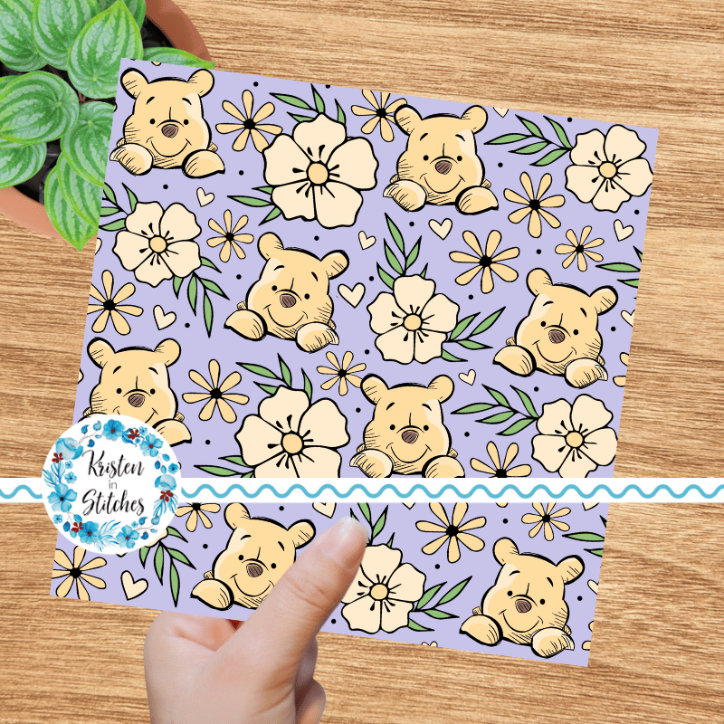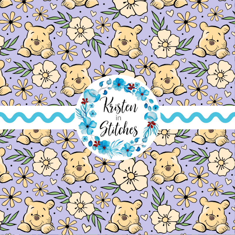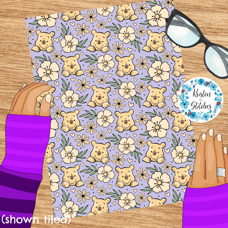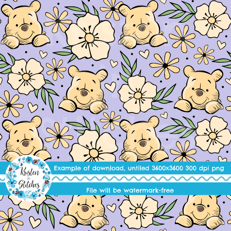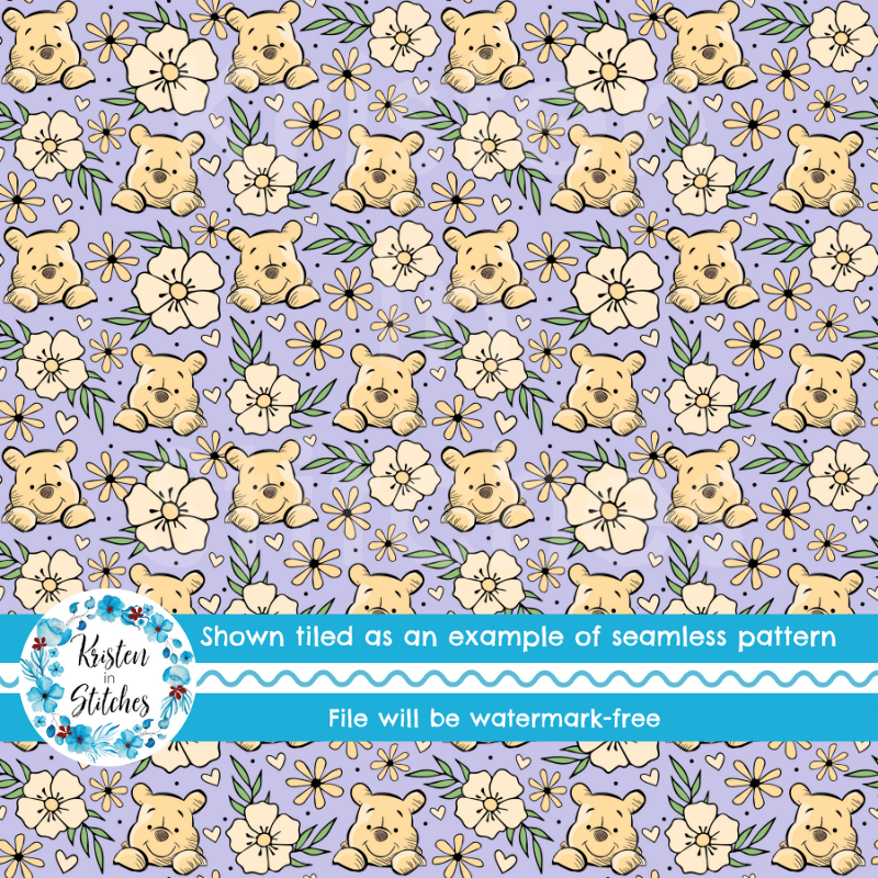 Pooh Bear Floral Seamless Pattern, Classic Winnie the Pooh Nursery, Lavender