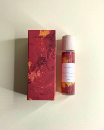 L'Acqua del benessere CORAGGIO è un rimedio nato per sostenere la persona in situazioni di notevole difficoltà. Ci sono momenti in cui si è di fronte a problemi difficili e complessi: si sente il desiderio di rinunciare, perché la soluzione sembra troppo complicata.La nuvola aromatica caratteristica di CORAGGIO è talmente inebriante, che distoglie il pensiero dalle difficoltà del momento. Le note di Gelsomino e Palmarosa avvolgono come un abbraccio, riscaldano il Cuore! A queste note fanno da supporto Cardamomo, Pepe nero e Ylang ylang insieme a piccole quantità di oli dalle note pungenti e penetranti. Come una nuvola spazza tutti i timori e permette di ritrovare l’energia necessaria per affrontare la situazione o il momento difficile.