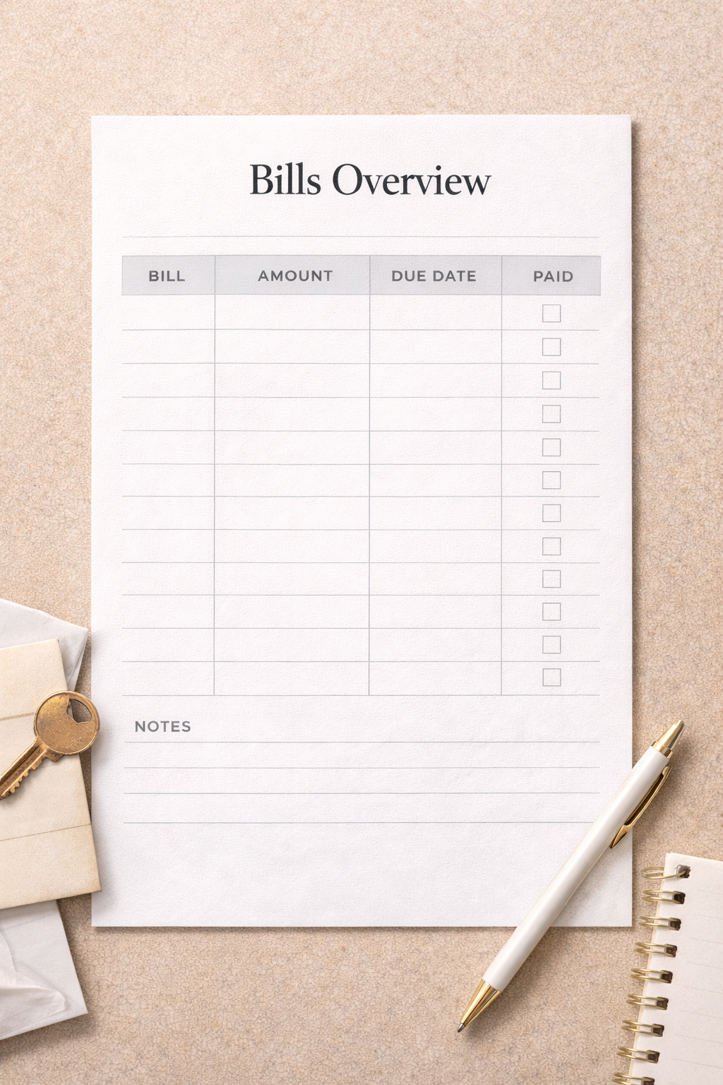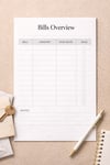 Bills Tracker Printable | Monthly Bills Overview | Minimal Finance Sheet