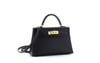 This unworn Hermès Kelly 28 Sellier features a sleek trapezoidal silhouette with a gold-plated finish. It was crafted in 2019 (stamped "D") from ska Made from black embossed Epsom leather - this is one of those pieces you buy now but will love forever. You can carry it by hand or over your shoulder by attaching the strap.