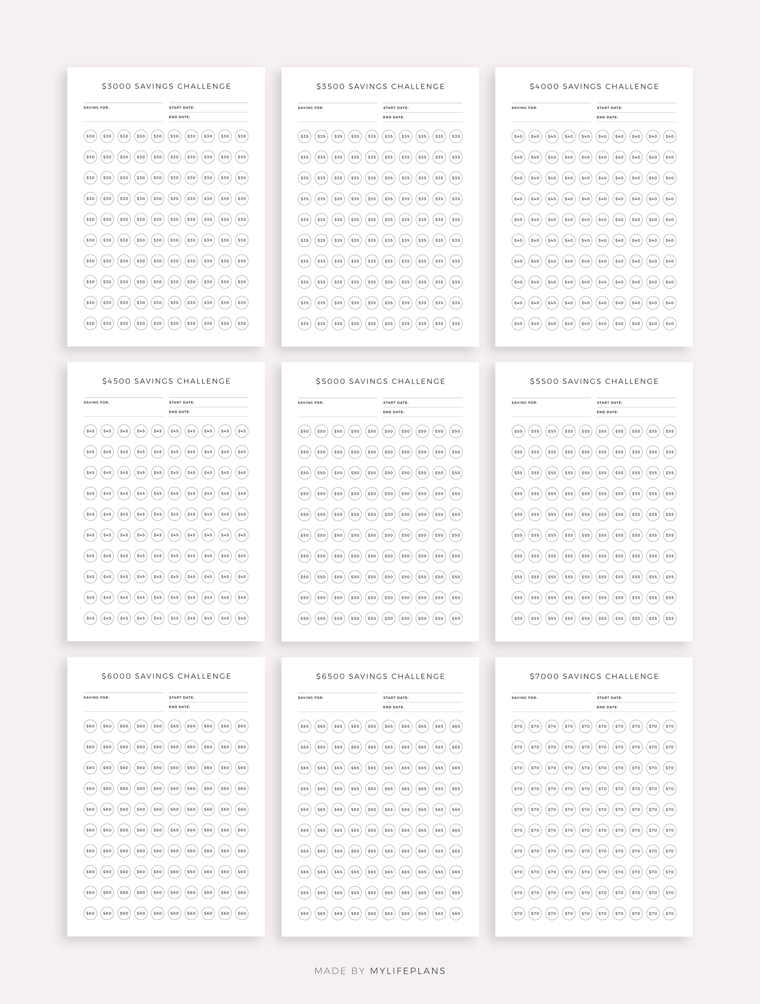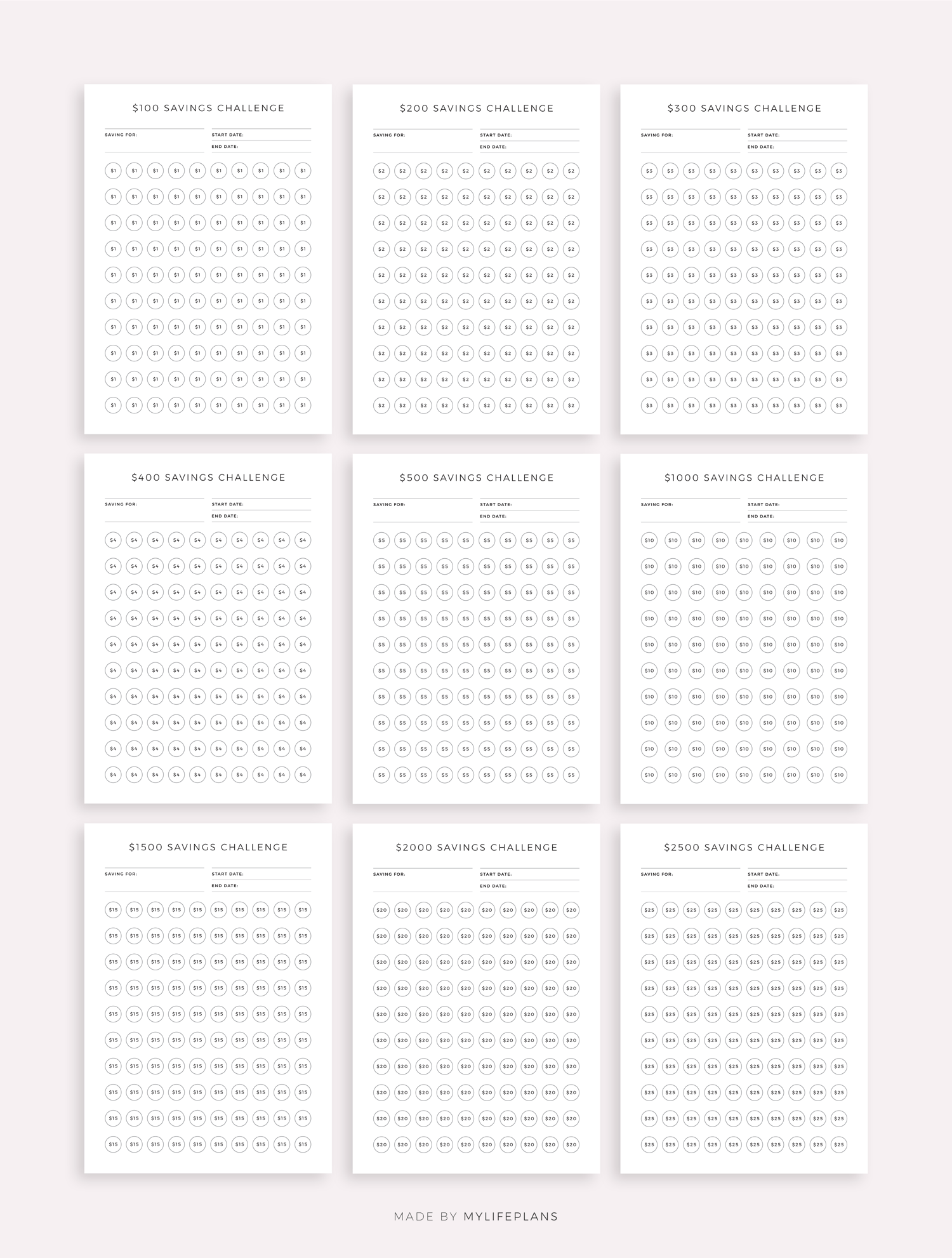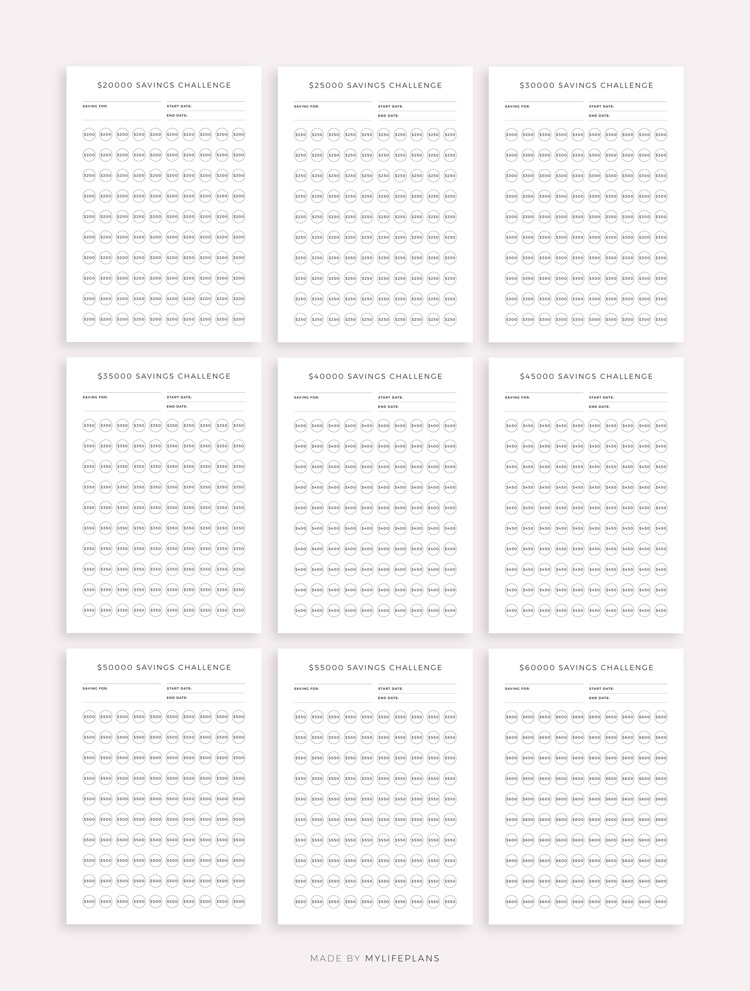 This is printable money saving challenge bundle. It includes total ot 52 different challenges. Just download, print and get started right away!