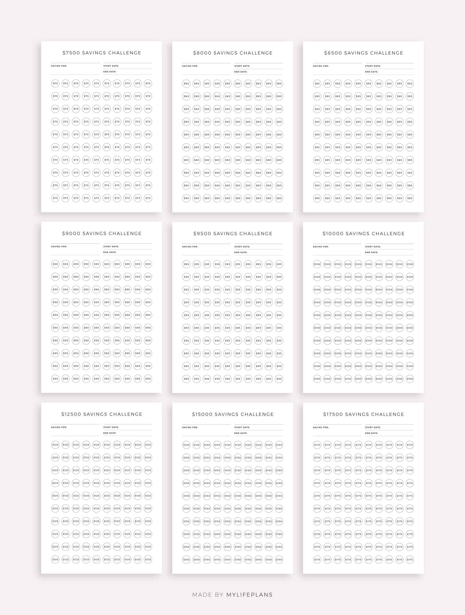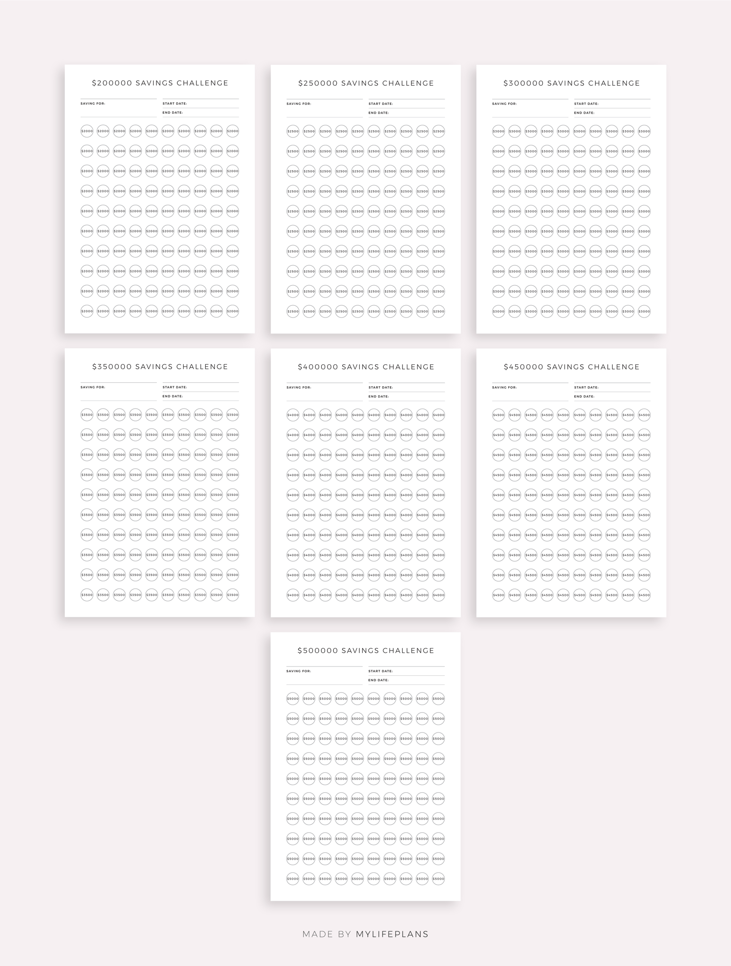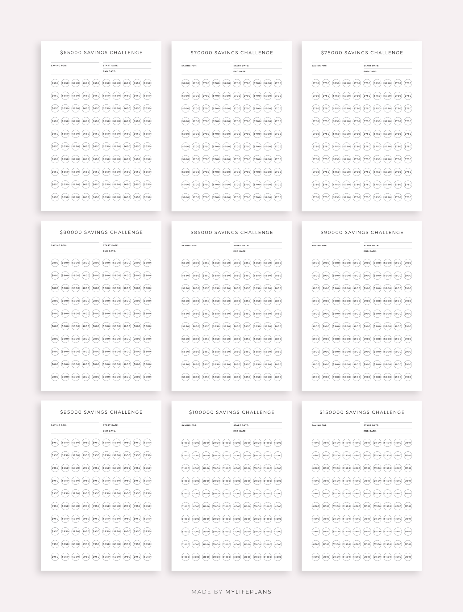 This is printable money saving challenge bundle. It includes total ot 52 different challenges. Just download, print and get started right away!