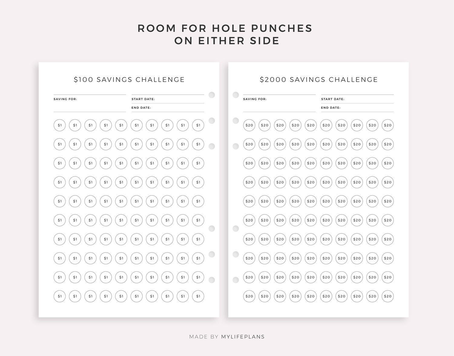 Money Saving Challenges, Printable & Fillable, A4/Letter Size