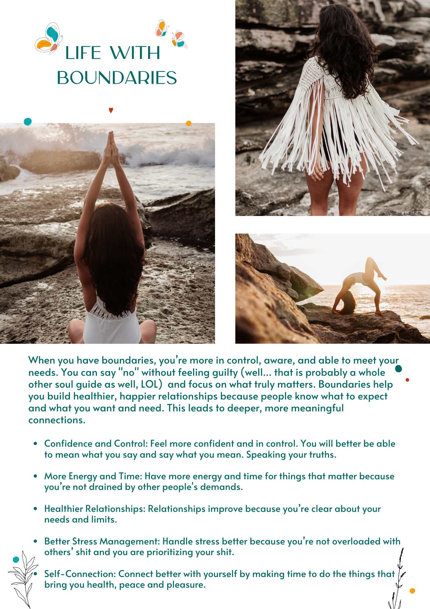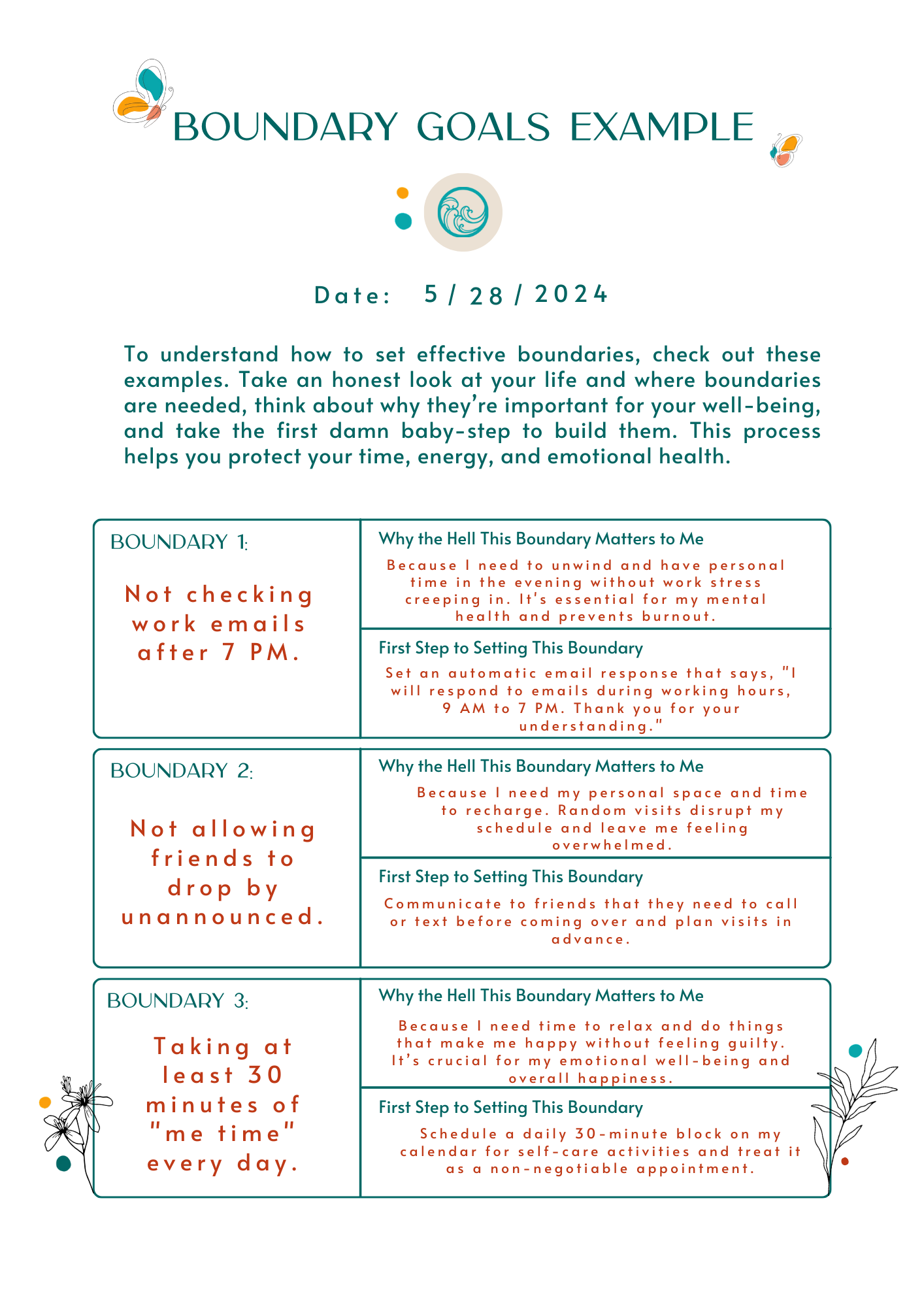 In "Boundaries Soul Guide", Amber provides practical and simple ways of setting and keeping personal boundaries. The very conversational and relatable voice makes this book a great place to gain surface knowledge on the types of boundaries—be they physical, emotional, intellectual, or time boundaries. Integrated are some concepts from dialectic behavior therapy (DBT), cognitive behavioral therapy (CBT), and emotionally focused therapy (EFT). It is a toolkit that integrates these to encourage one to develop healthier relationships through healthy self-awareness and personal growth. It is filled with reflective prompts and practical exercises that can easily fit into daily life making it very practical and supportive. Not all will appreciate the informality of the language, but this is where the strengths of the guide come through: it is authentic and offers practical advice. Her candid style makes it really interesting and relatable, though some readers might prefer a more professional tone. Overall, "Boundaries Soul Guide" is a valuable resource for anyone looking to improve their boundary-setting skills and take control of their life.