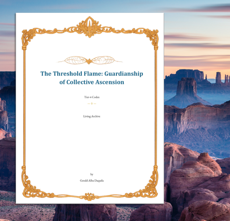 The T4 Codex on The Threshold Flame represents a guardianship current that illuminates the passage between different states of existence. Its role is to stabilize transitions, amplify consent, and honor timing. Implementing practices that promote clarity, warmth, and sovereignty, it serves both individual and collective processes, fostering support without coercion or drama.