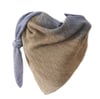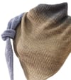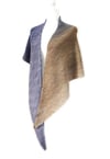 This asymmetrical triangular shawl is worked from one tip to the opposite side, making it very flexible for using up all one’s yarn (instructions are included for customizing the shawl’s length). The right side rows are worked largely in stockinette as rest rows, while the patterning is created on the wrong side with purl stitches.