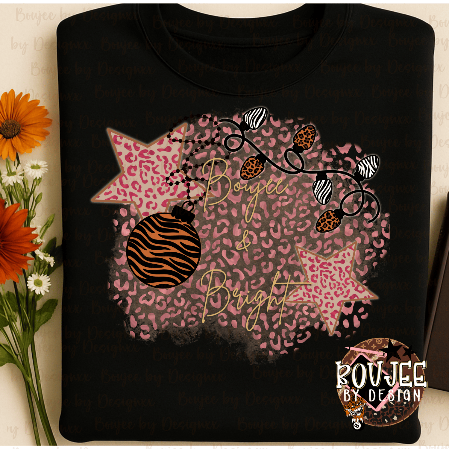 boujee christmas, bright christmas, leopard christmas, animal print holiday, sublimation png, DTF print, pink cheetah print, holiday shirt design, boujee bright png