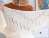 This textured shawl is incredibly soft and cozy. It’s worked in bias from cast on tip to the bind off row, alternating garter stitch and lace sections. The slightly curved shape is created by increasing stitches on one edge and decreasing on the other. It's also very easily adjustable, you can make it smaller or larger by working fewer or more repeats. The pattern includes a photo tutorial for bobbles.
