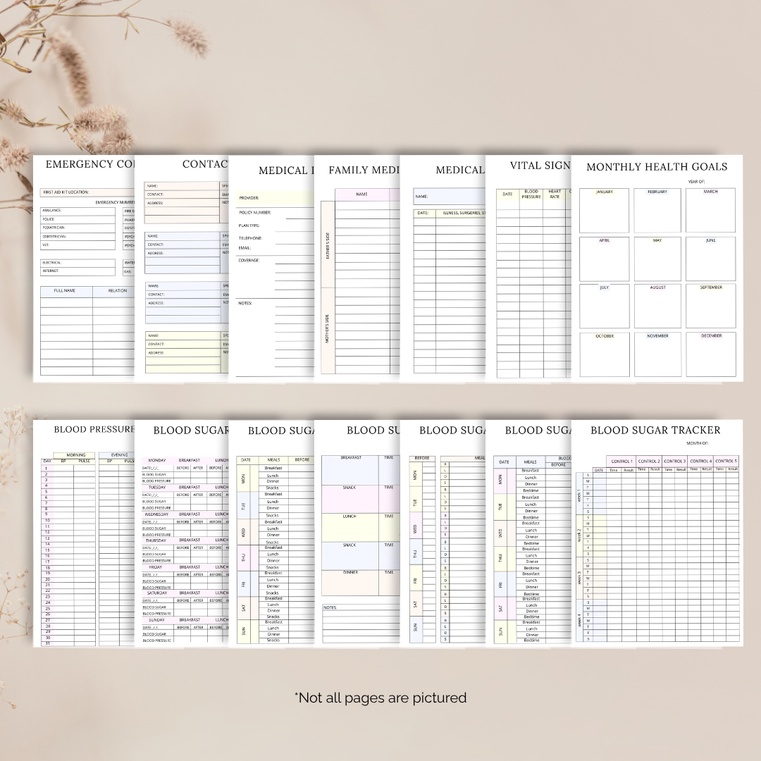 Blood Sugar Planner – 37-Page A4 Canva Template | Glucose Log, Insulin Tracker, Meal & Symptom Monitoring, Medical Overview (Printable & Editable)