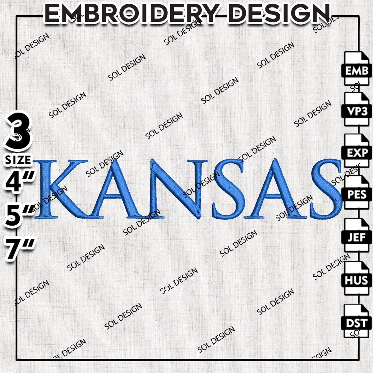 NCAA Kansas College Football Team Word Logo Embroidery Designs, NCAA Kansas Jayhawks Machine Embroidery Files, NCAA Logo embroidery designs, NCAA Kansas Logo, Digital Download