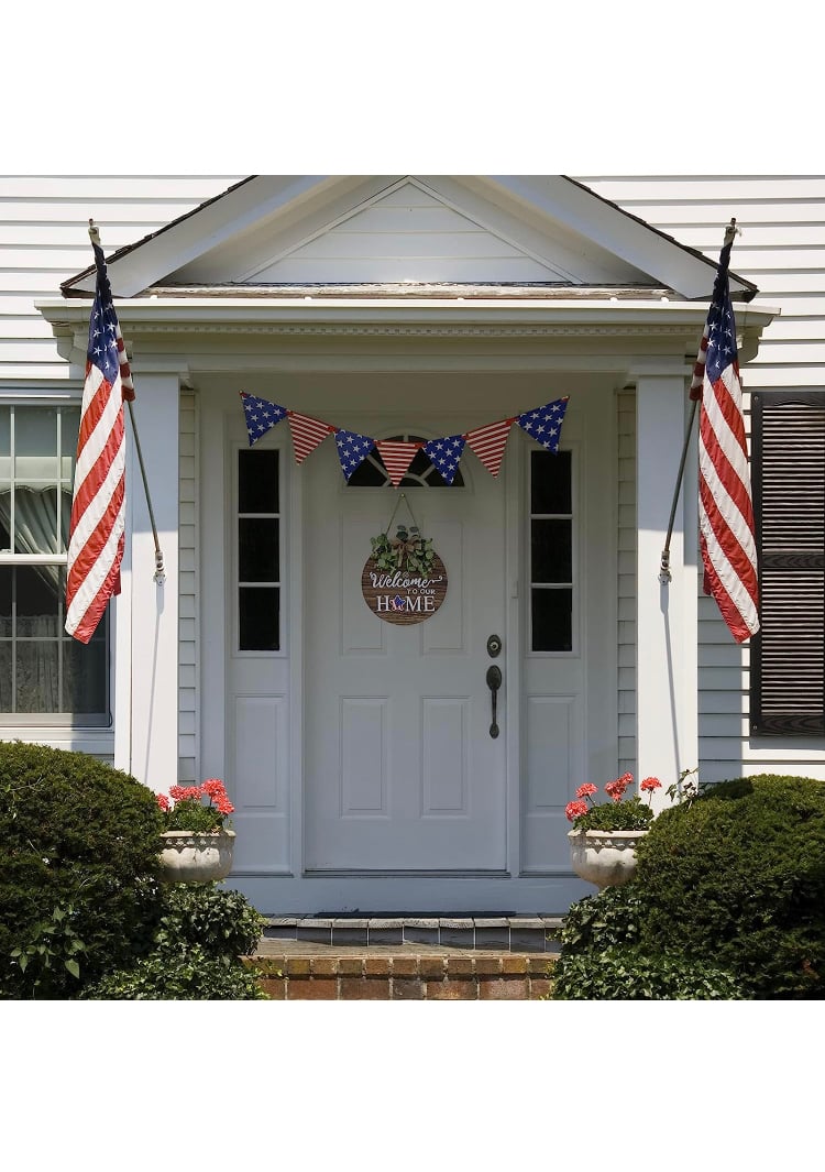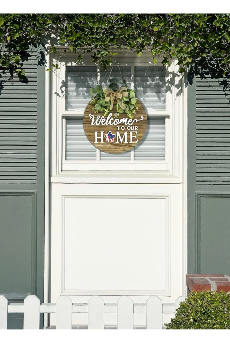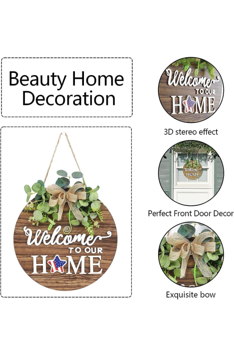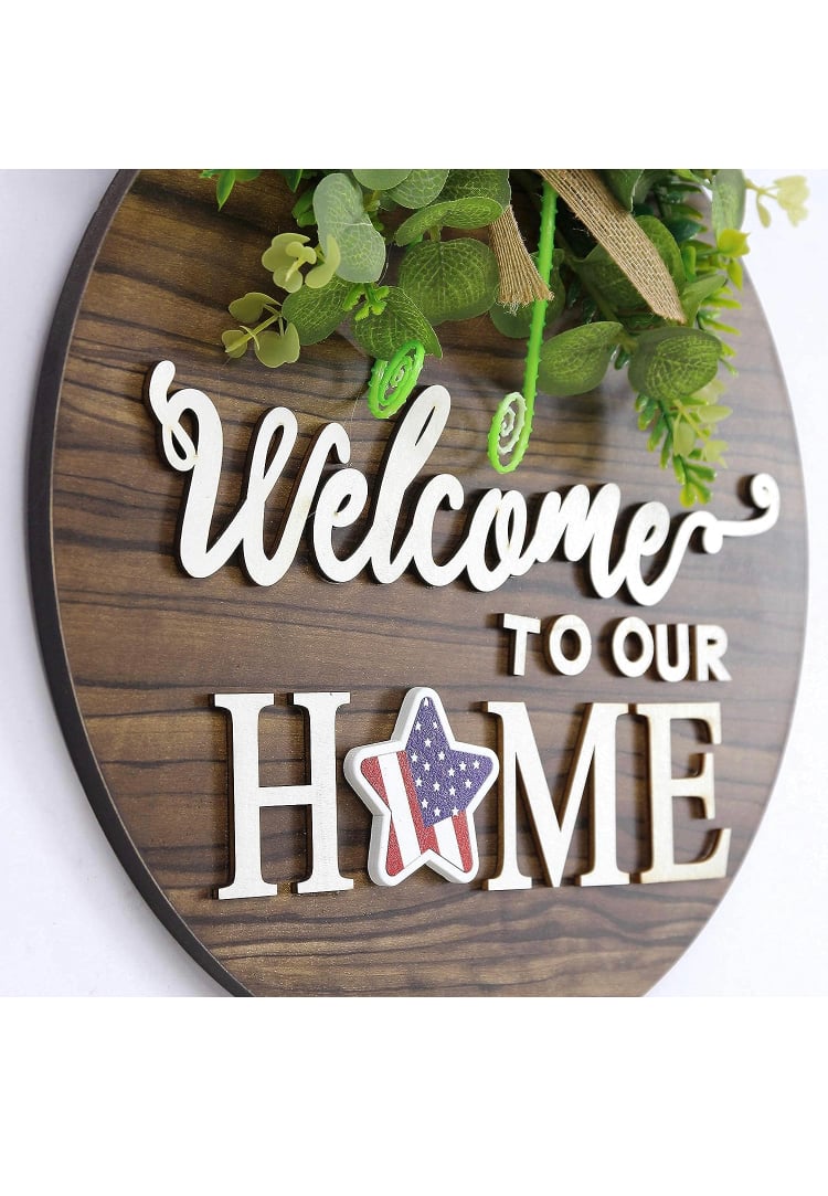 - MULTI TOPIC USE:Our front door welcome sign can be a patriotic decorations or ornament to complement other decorations. our wooden wreaths can also be used for Valentines Day, St Patricks Day, Easter, Mother's Day gift, 4th of july decorations, fall decor for home,harvest day, Halloween, Christmas and other festivals. We can switch scenes according to different Holiday and use one thing for many purposes.