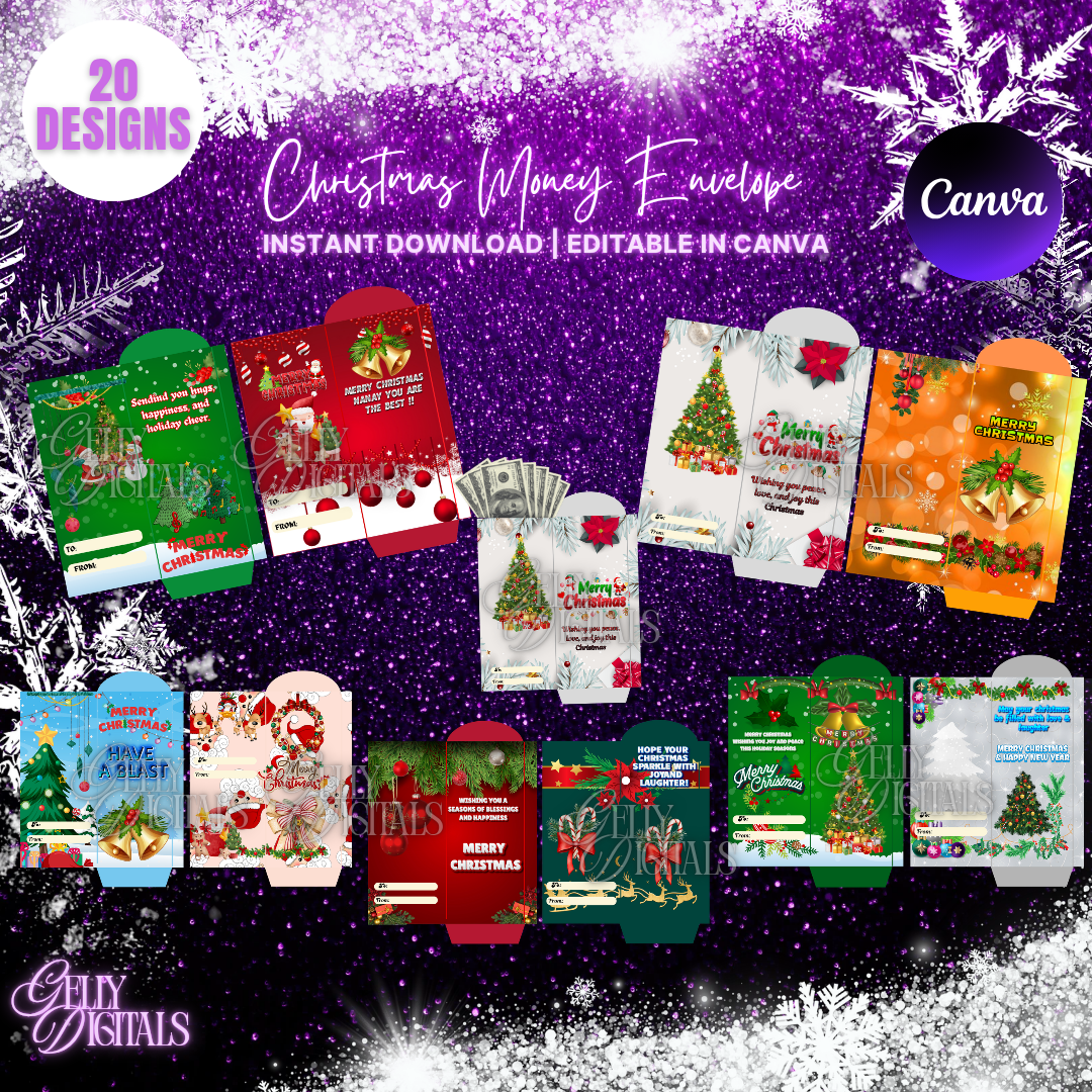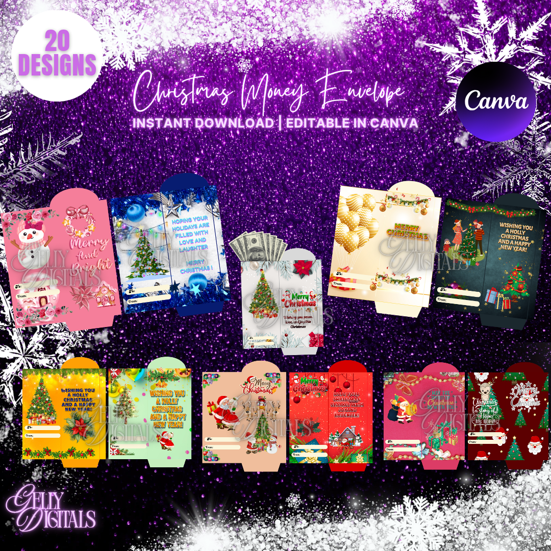 Make your holiday gifting extra special with our Christmas Money Envelope designs! Featuring 20 unique and vibrant designs, perfect for all your festive celebrations. Whether you're gifting money, gift cards, or small surprises, these envelopes are a beautiful way to present them.