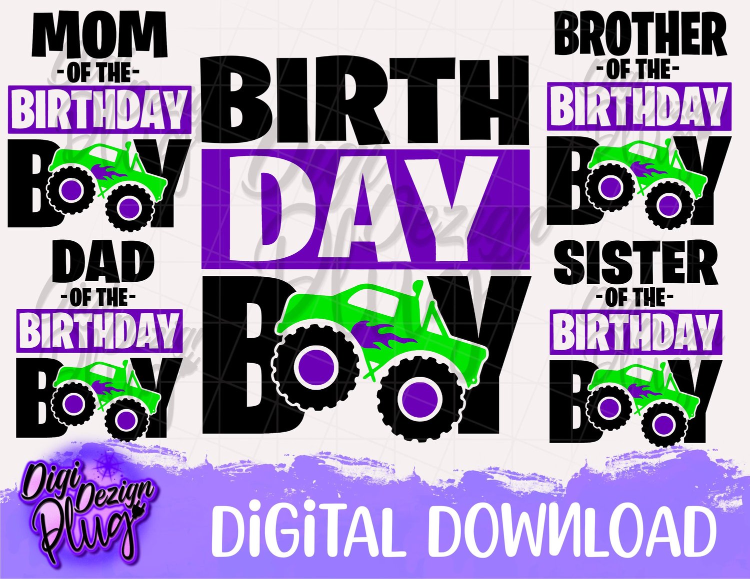 Monster Truck Birthday Png-Family Bundle-Digital Download