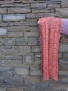 This stole is inspired by the architecture of The Glasgow Women’s Library. Founded in 1991 and housed since 2013 in a Grade B Listed Carnegie Library in Landressy Street, the library boasts a stunning modern granite extension which names the titles of important works by women. The design follows the shape of this corner extension, itself enfolding the building like the covers of a book.
