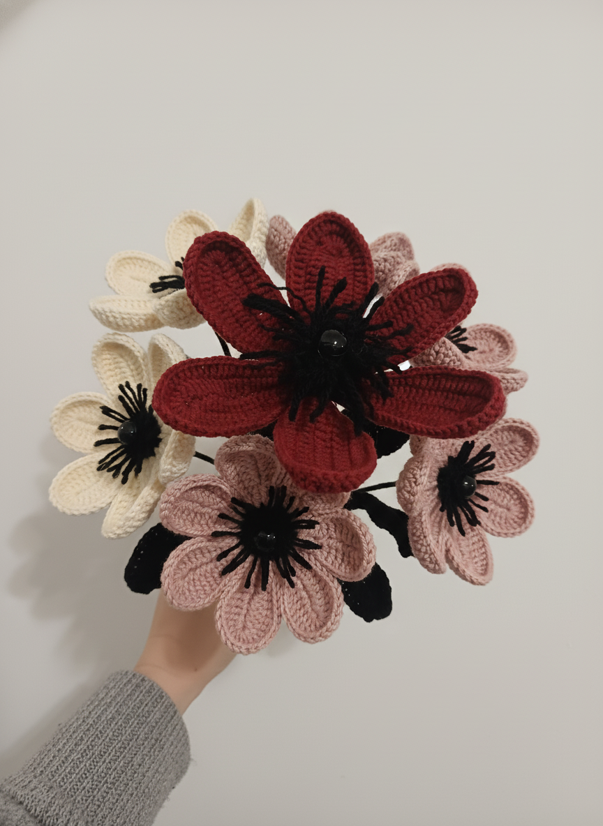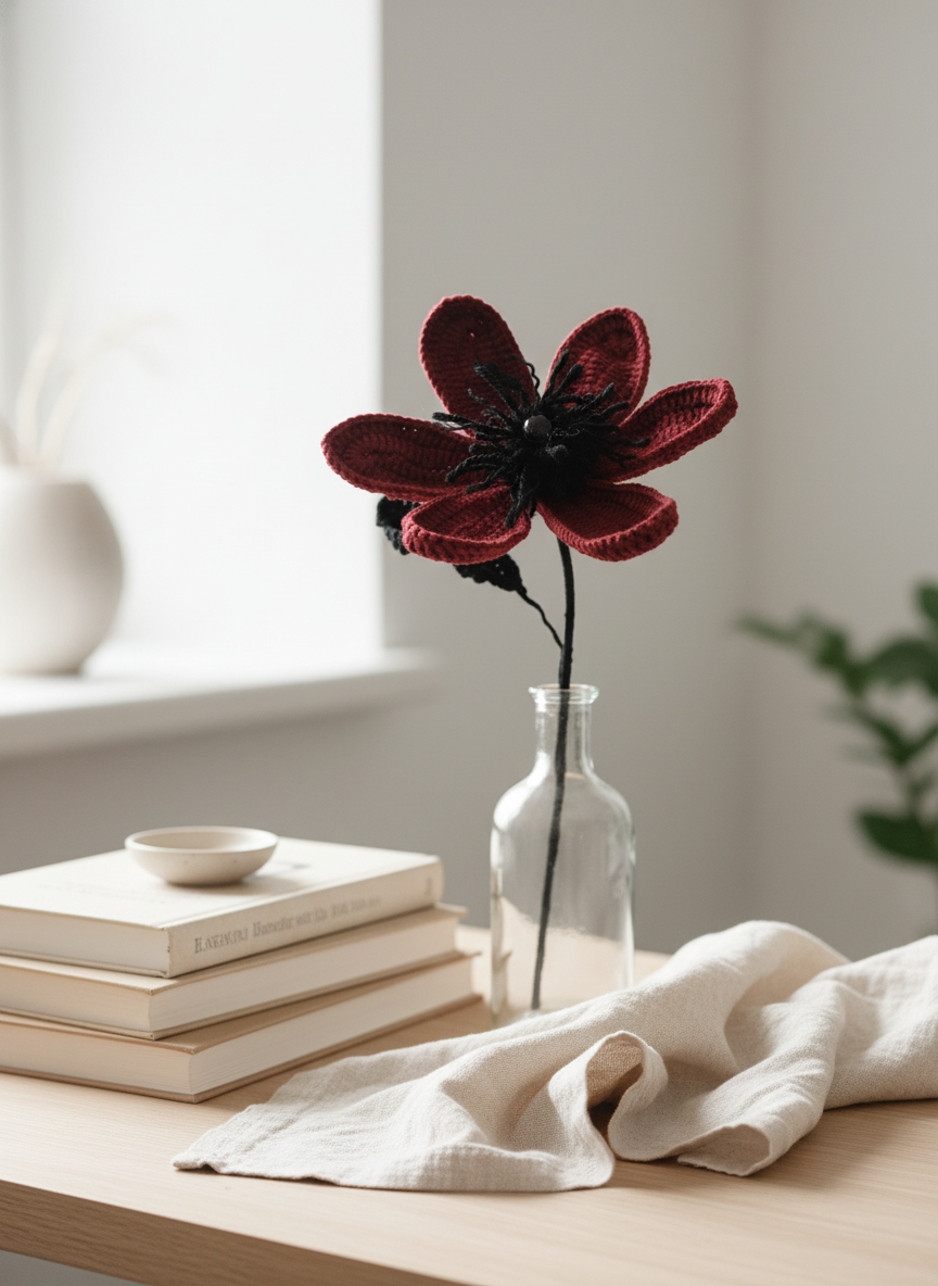 Whether placed in a vase, added to a bouquet, or given as a handmade gift, this design brings a modern, artistic edge to crochet flowers.