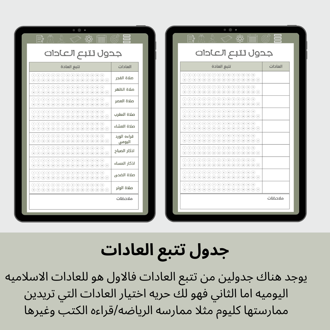 ـ جدول تتبع العادات الاسلامسه اليوميه مثل ( الصلوات & الاذكار & قراءه القران )