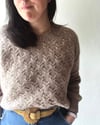 Il est travaillé de haut vers bas, en une seule pièce, sans aucune couture. Le dos et les manches sont en jersey facile, tandis que le devant présente un joli motif de torsades qui apporte tout l’esprit de l’automne avec lui.