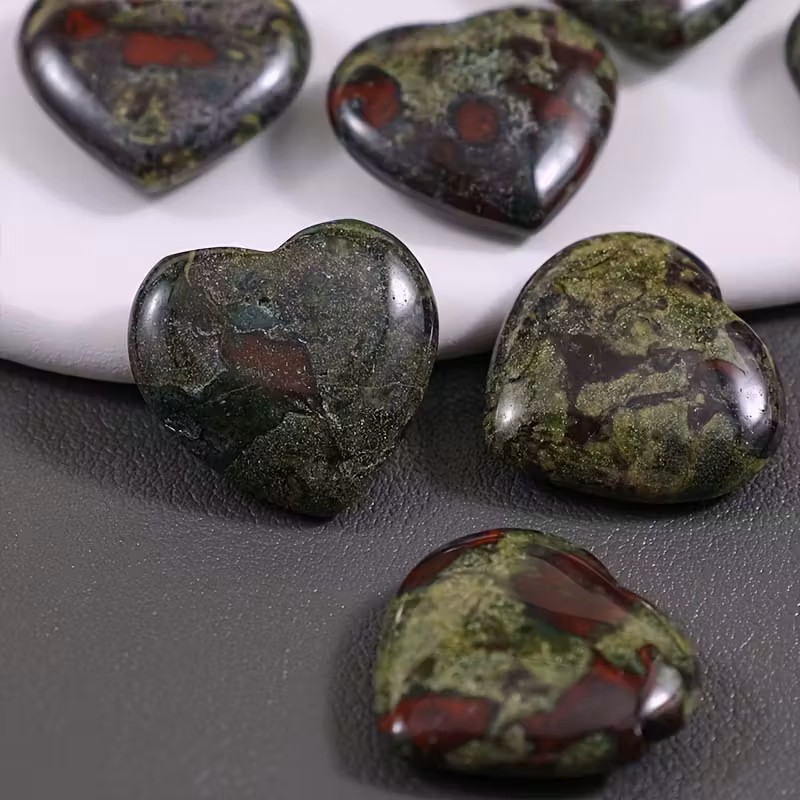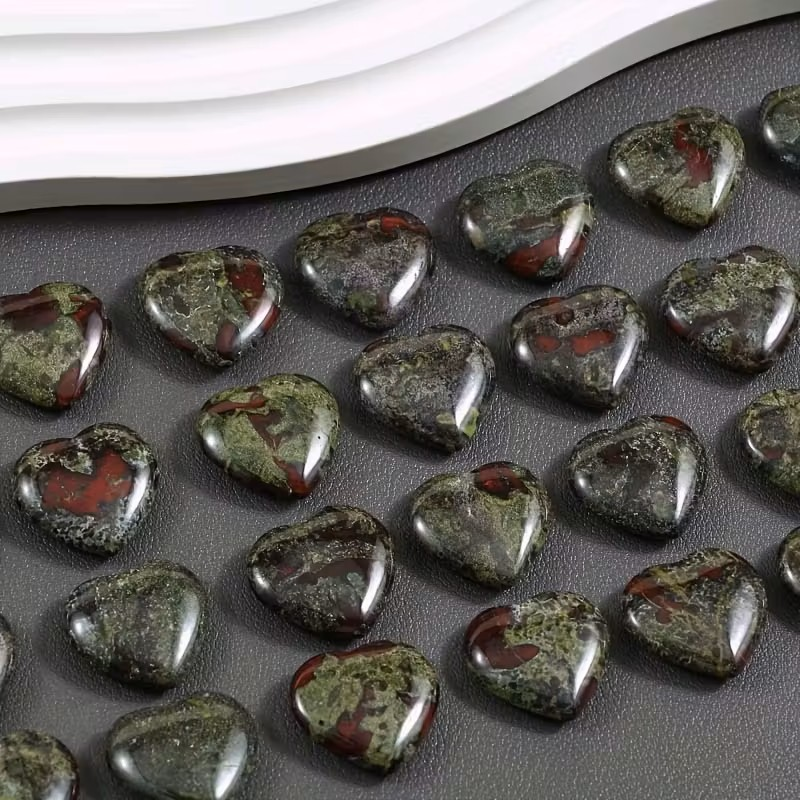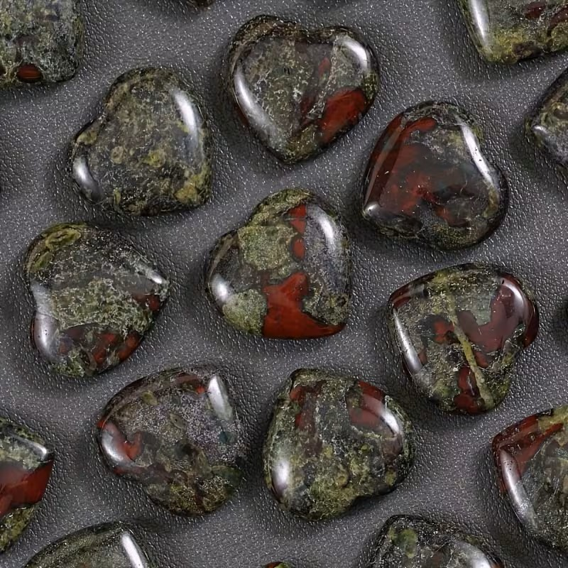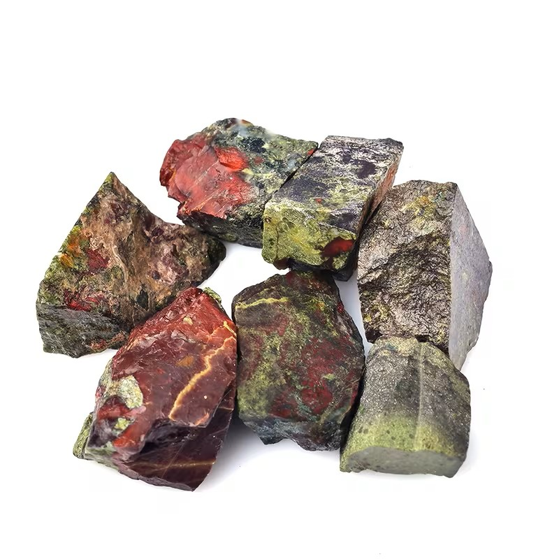 Drageblod er en naturlig stein bestående av grønn epidot med røde innslag av piemontitt.