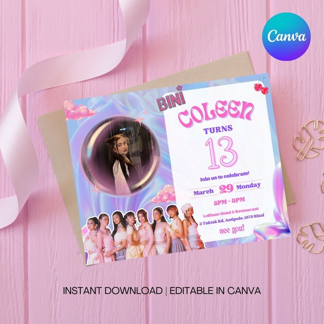 Celebrate in bloom-powered style with this BINI-inspired birthday invitation — perfect for fans who love a splash of color, pop vibes, and girl power! Designed with a 5:4 ratio, this template is ideal for printing or sharing online.