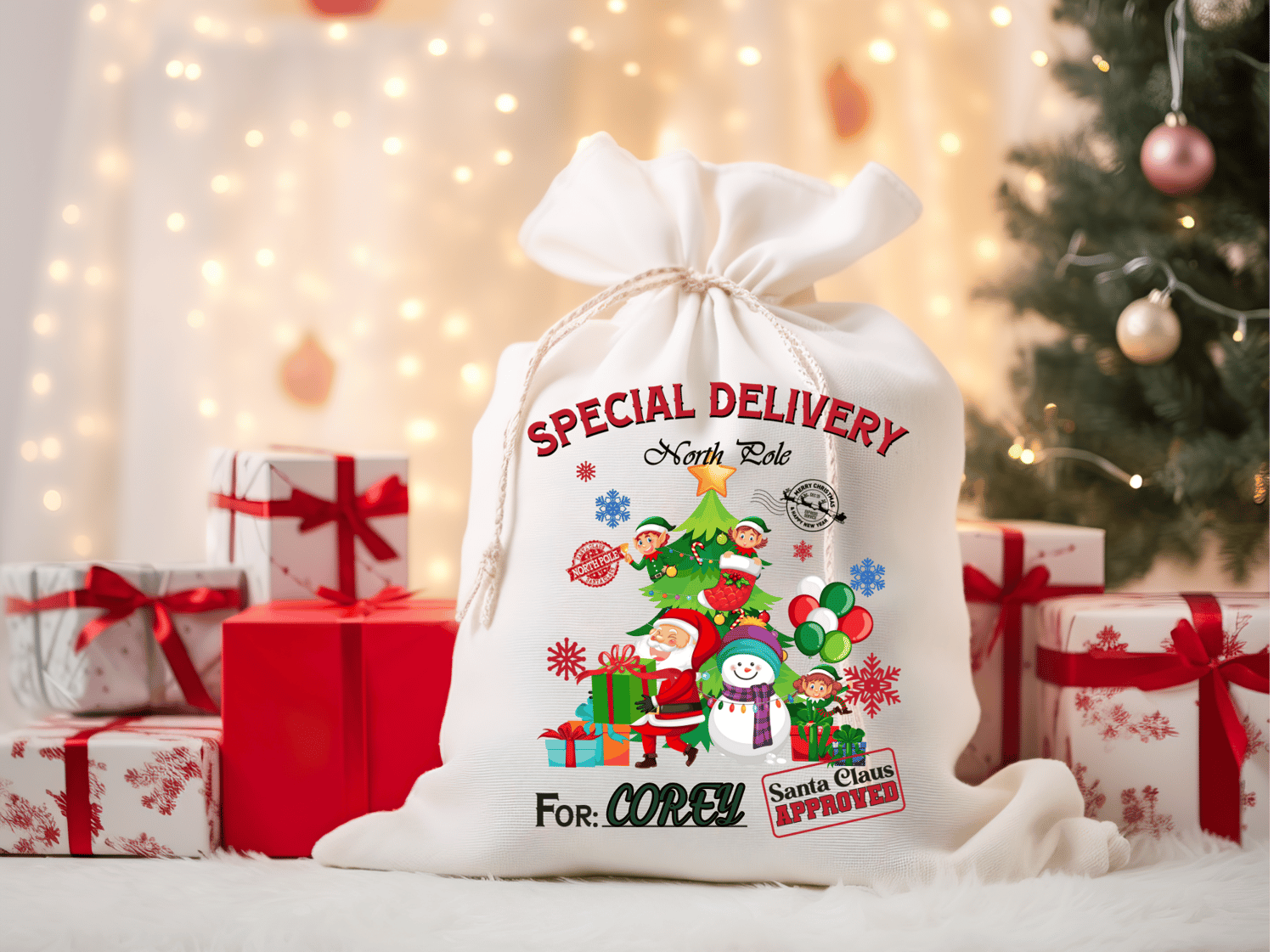 Bring the magic of Santa’s workshop to your home with Special Delivery Santa Sacks! These charming, oversized gift bags are perfect for holding all your Christmas surprises. Crafted from durable fabric and adorned with festive designs, each sack features a playful “Special Delivery” label, making it feel as though your gifts have been personally delivered by Santa himself.