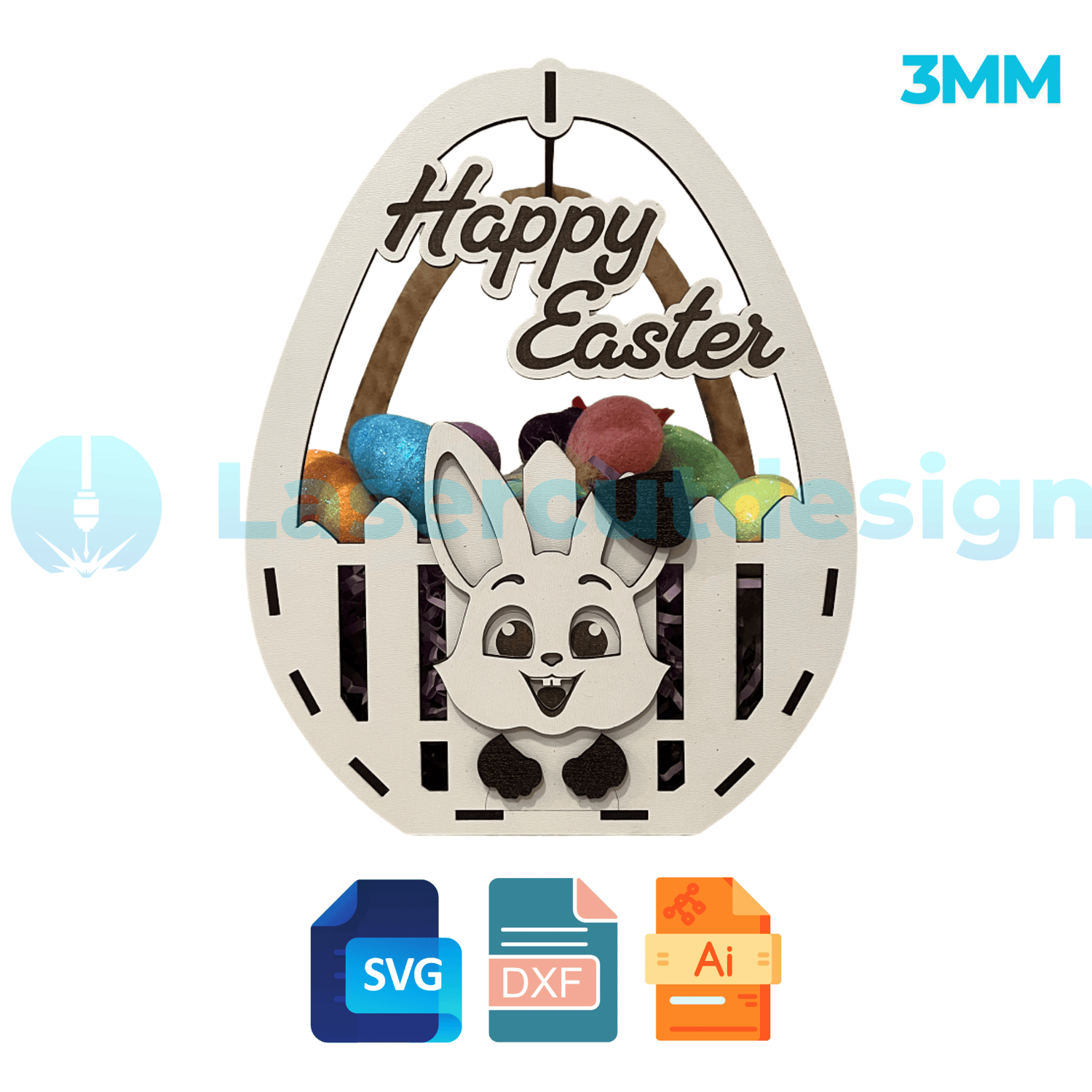 Easter Egg Basket - Bunny - Files For Laser Cutting, SVG,DXF,AI Files Template , Laser Cut Pattern 3mm