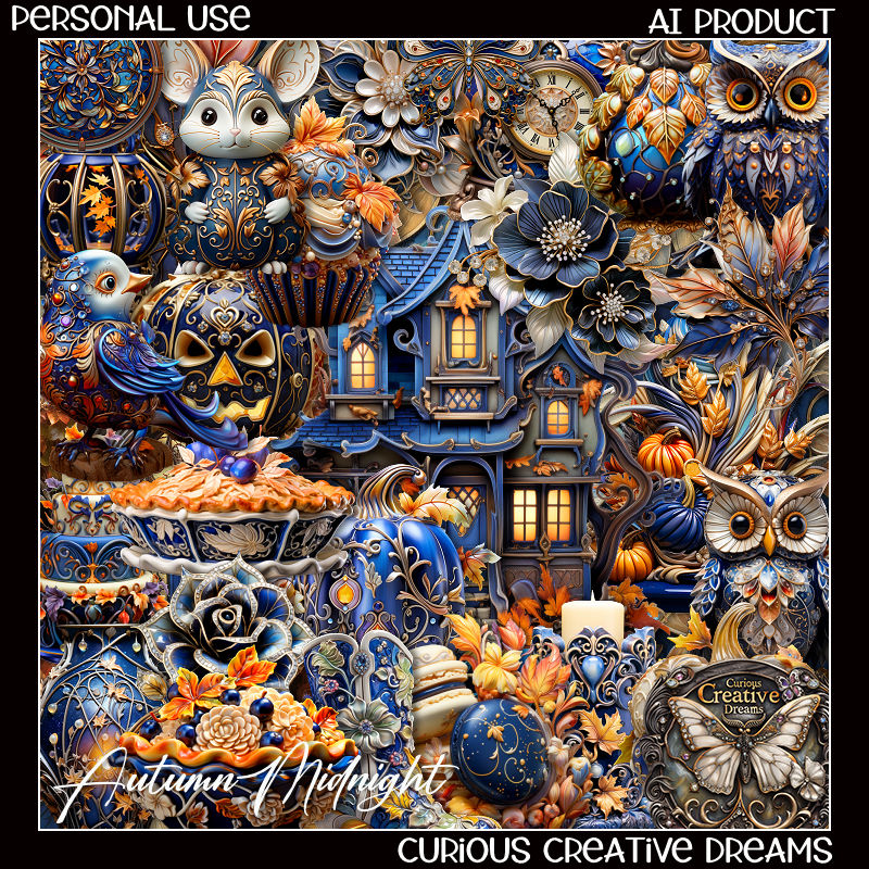 Autumn Midnight Comes with 103 Eelements , 10 Frames , 20 papers , This Kit Included AI .