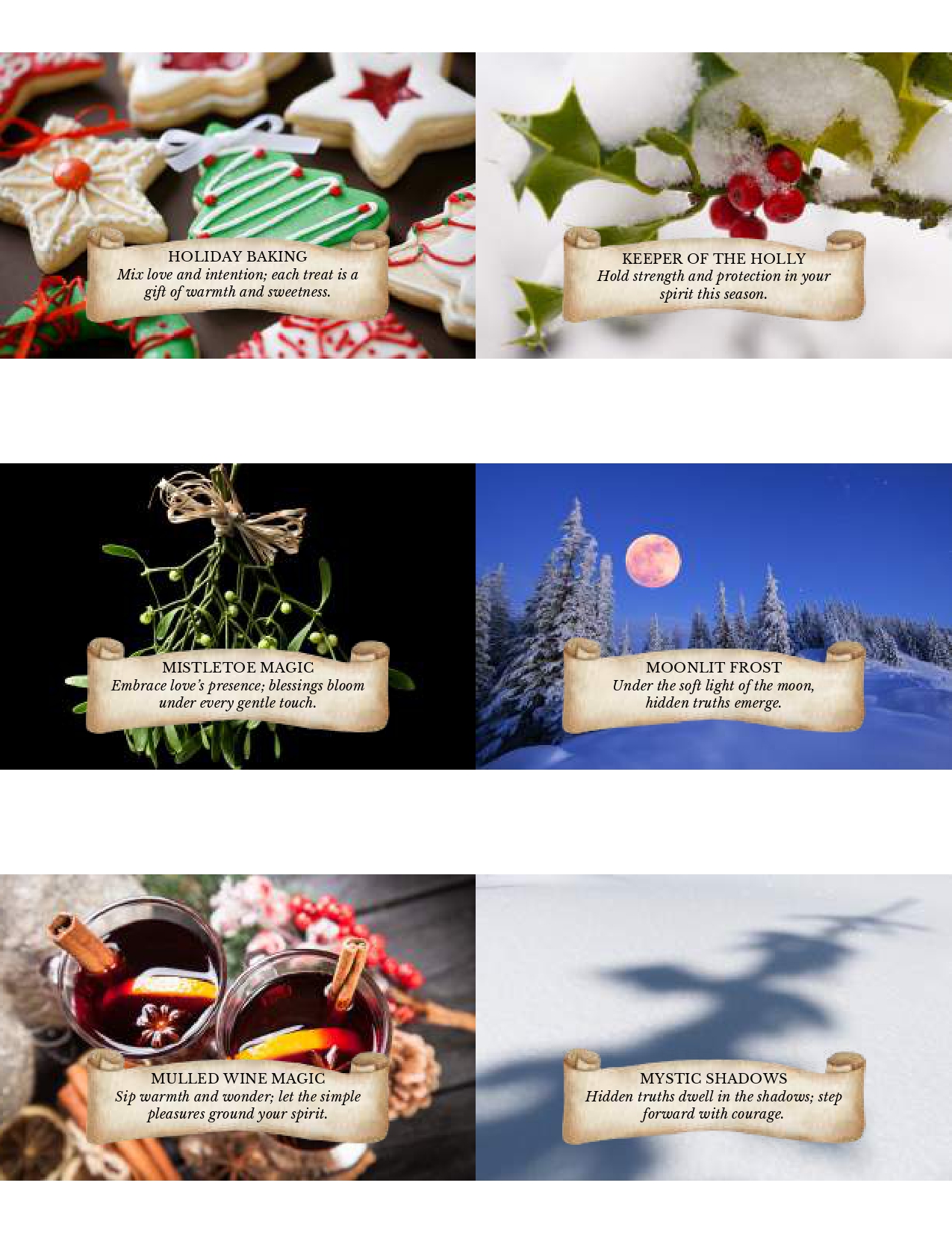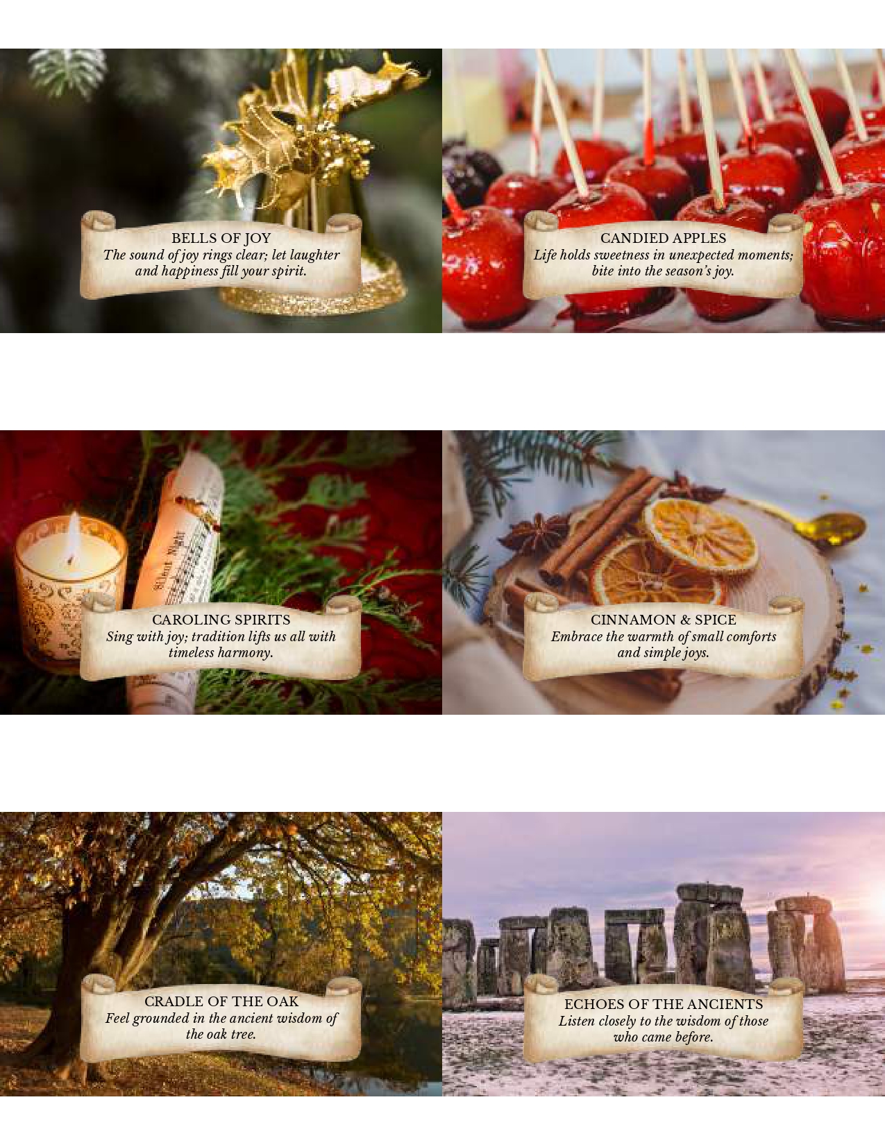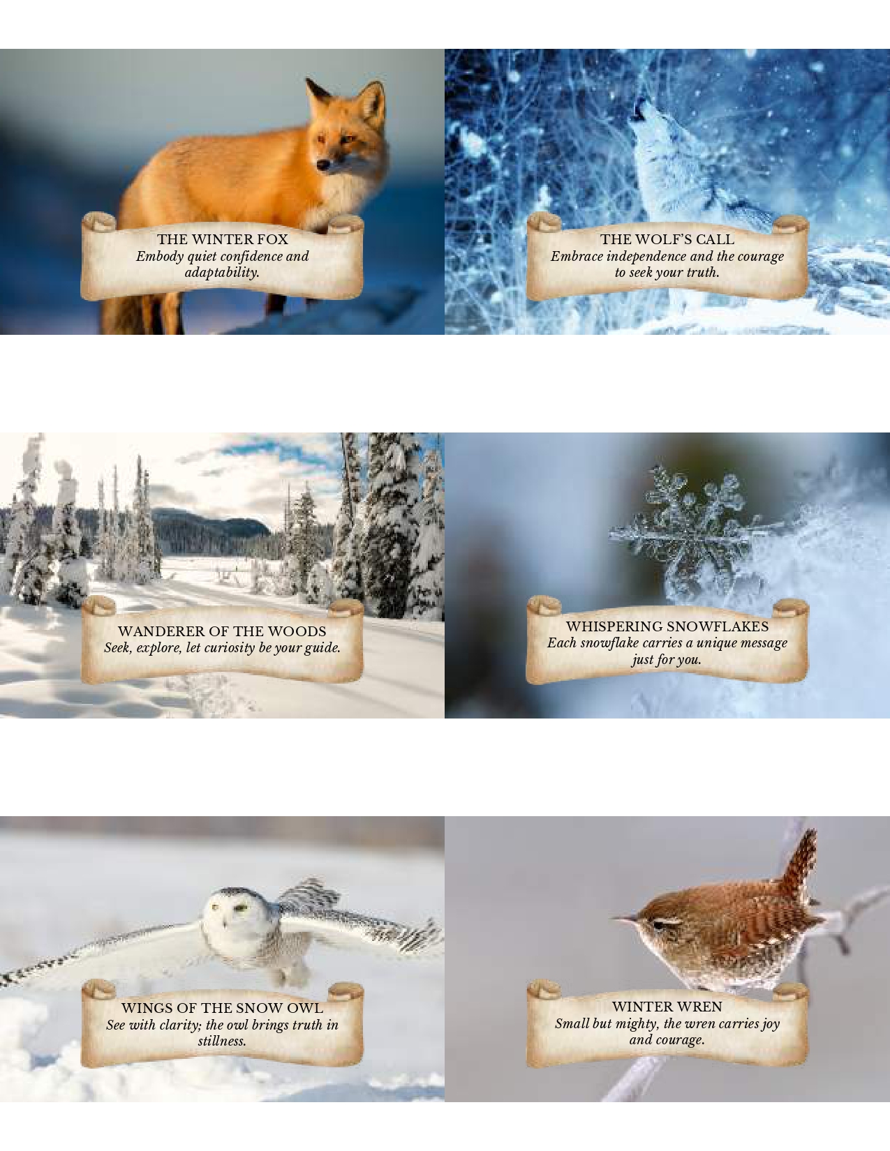 You can use the cards in your Christmas themed oracle card readings, or as journaling prompts.