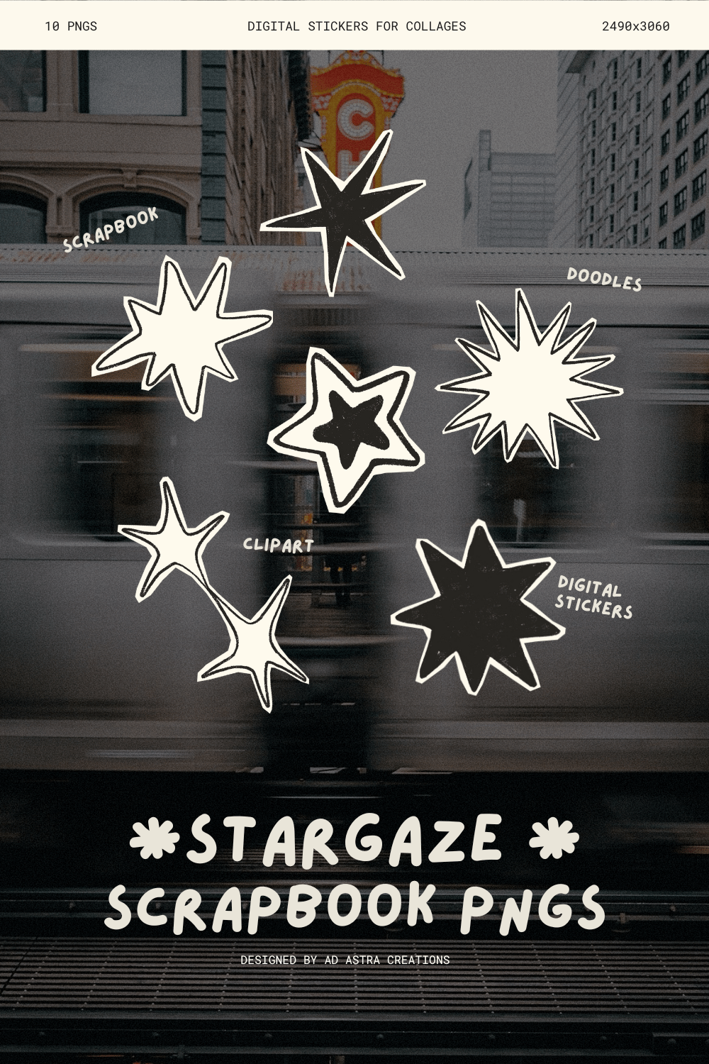 Bring a touch of magic to your creative projects with Stargaze, a free set of 10 star-themed PNGs. Designed in a scrapbook-inspired style, these cut-out elements are perfect for collages, digital journaling, moodboards, social media graphics.
