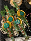 - il Mazzetto da Fumigazione in due versioni: uno con Tuja Gigante (quella che in America viene chiamata cedarwood), cannella, arancio e sigillo con pentagramma - e uno con erbe miste, vetiver, cannella, arancio e selenite;*