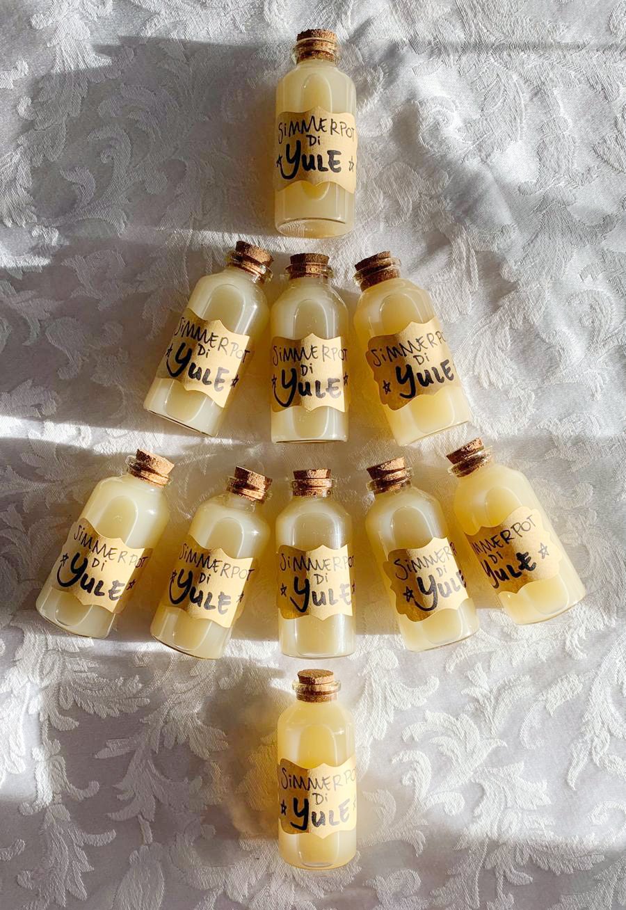 - il Simmer Pot di Yule, realizzato da me con agrumi, spezie, resine e spirito di conifere, da scaldare sul bruciaessenze per profumare la casa e prepararla alla notte magica;