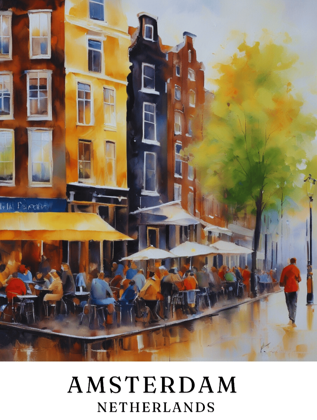Amsterdam Poster, Netherlands Poster, Canal Poster, City Poster, Travel Poster, Wall Art, Home Decor, Dutch Poster, European Poster.