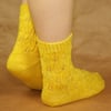 Worked from the toe up with a short row heel. The lace stitch pattern creates flames working up the foot and leg.