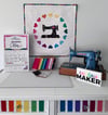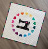 Just Sew is a foundation pieced mini quilt with the perfect theme for your sewing room. Make the iconic vintage sewing machine look modern and add a ring of rainbow hearts to declare your love of sewing.