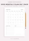 2029 Monthly Planner on One Page, Printable & Fillable, A4/Letter Size