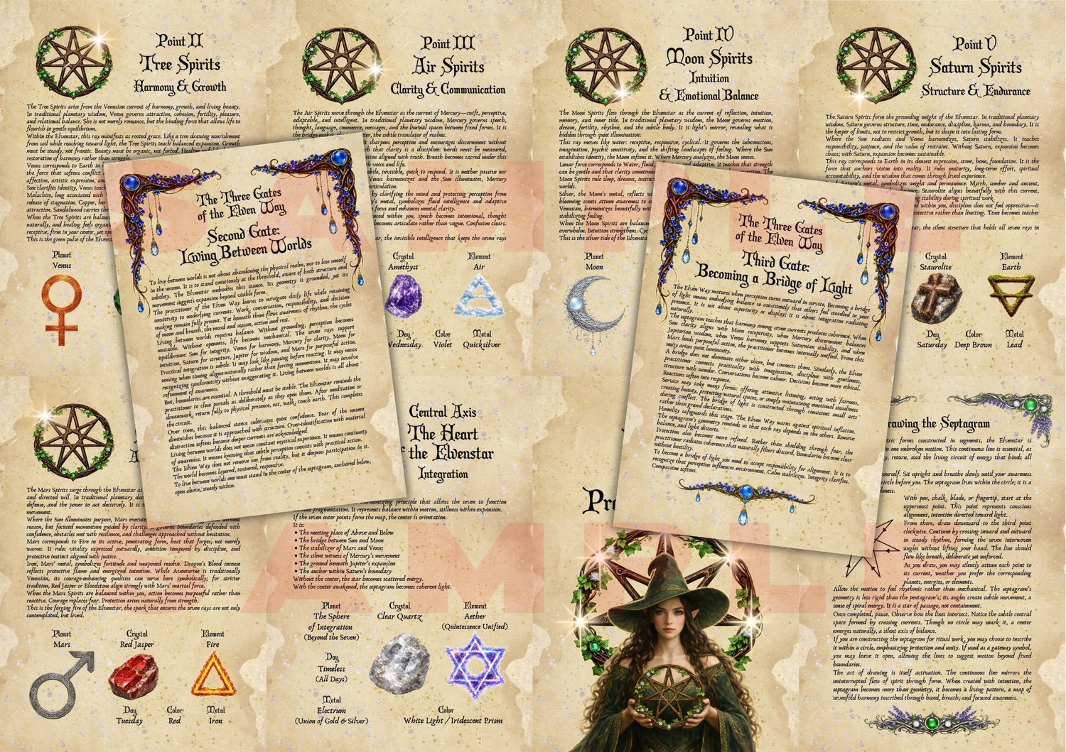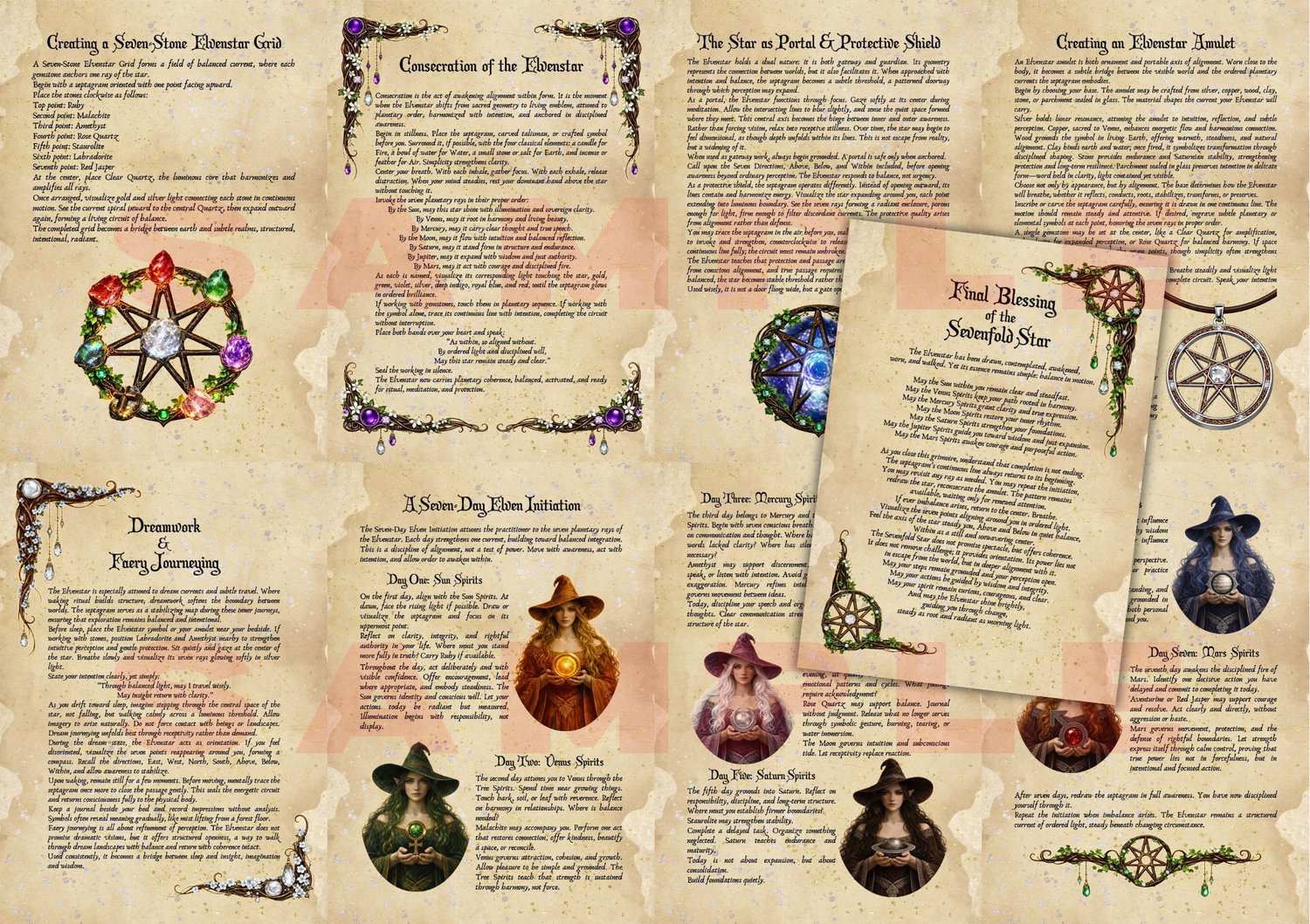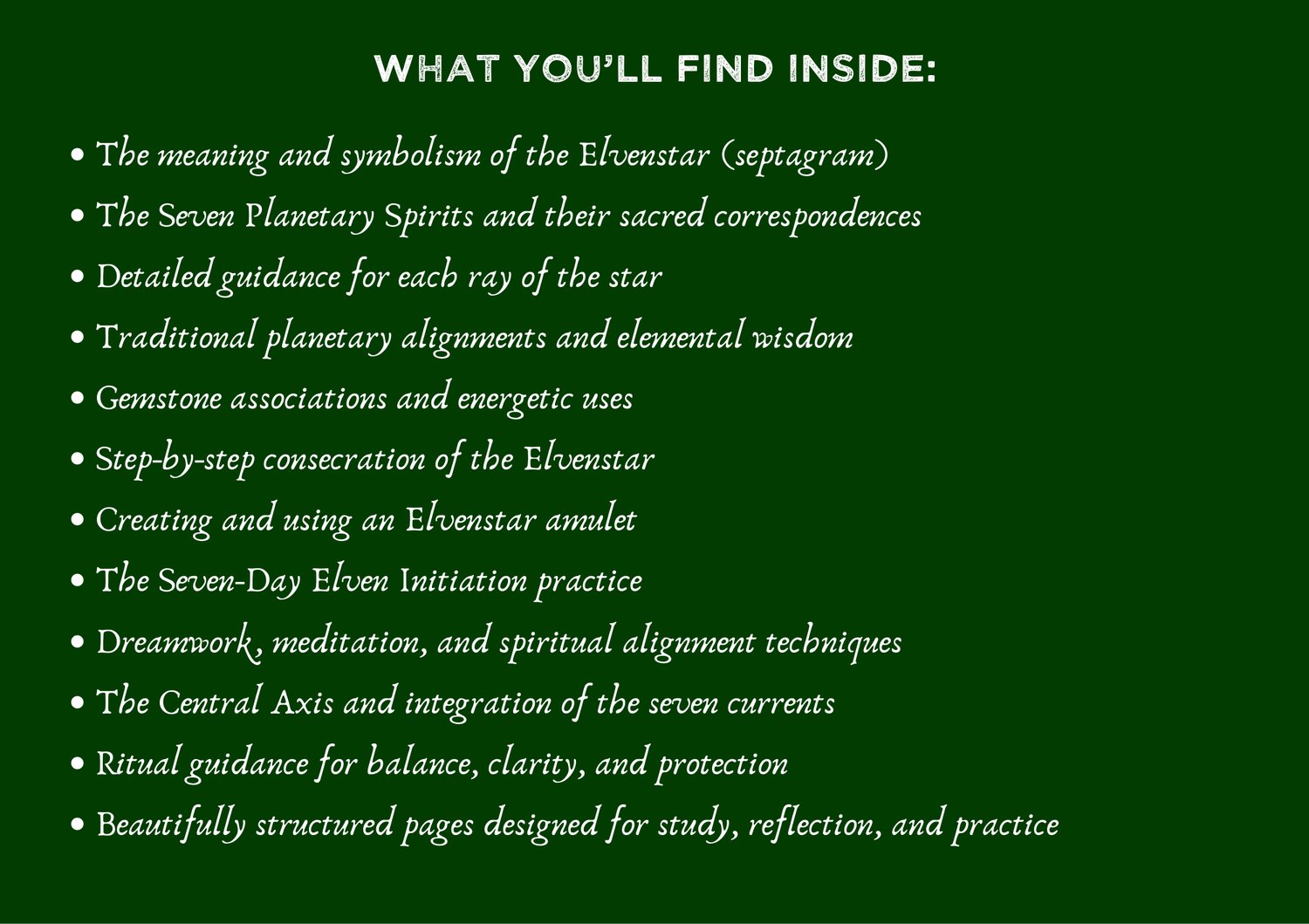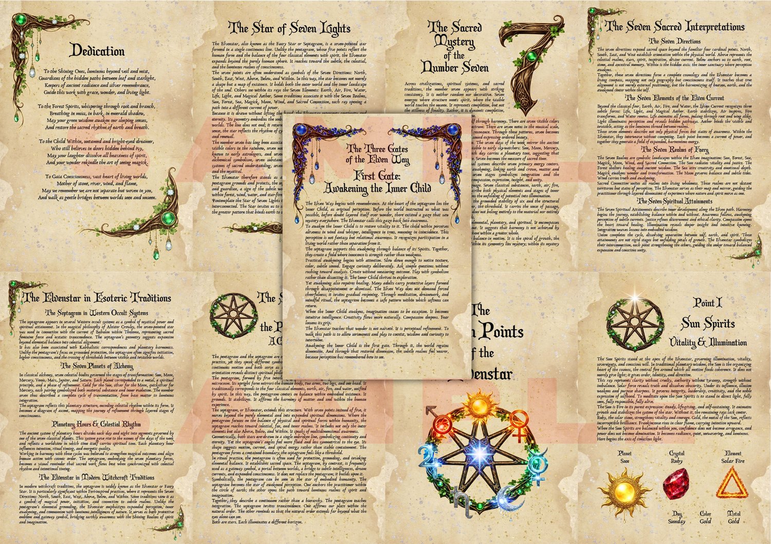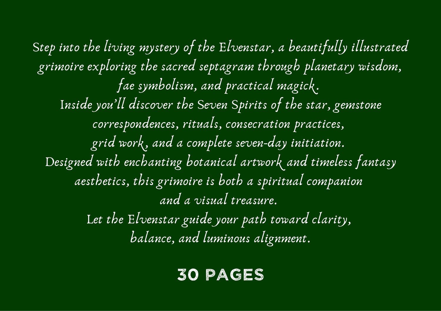 Step into the living mystery of the Elvenstar, a beautifully illustrated grimoire exploring the sacred septagram through planetary wisdom, fae symbolism, and practical magick.