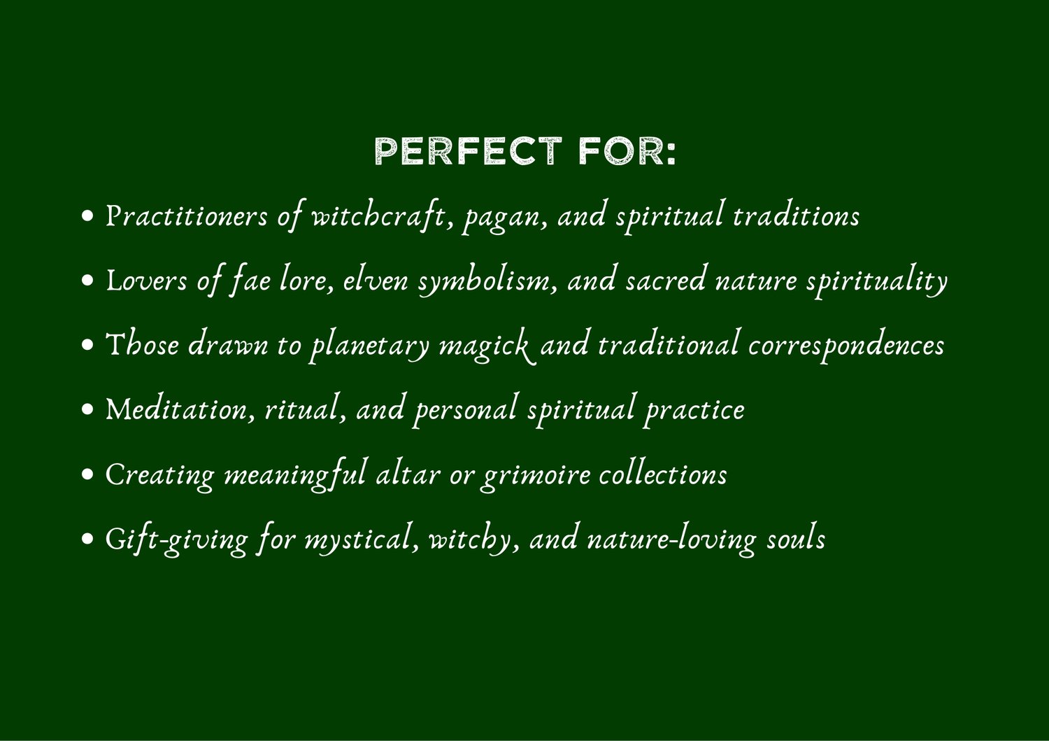 • Lovers of fae lore, elven symbolism, and sacred nature spirituality