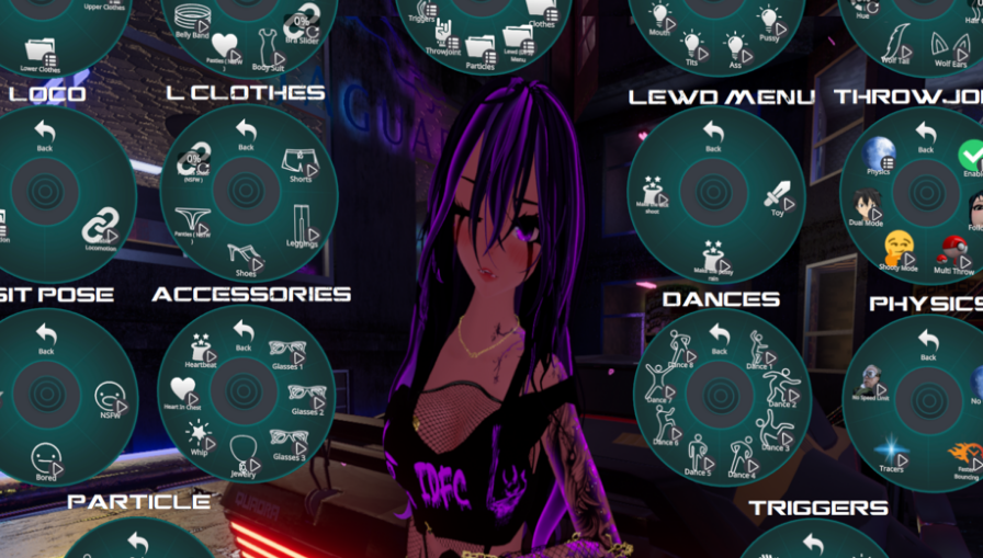 Lewd stuff with DPS: Left hand, Right hand, Pussy, Ass, Tits, Mouth, Dick, two very lewd particles "wink wink", Toy.